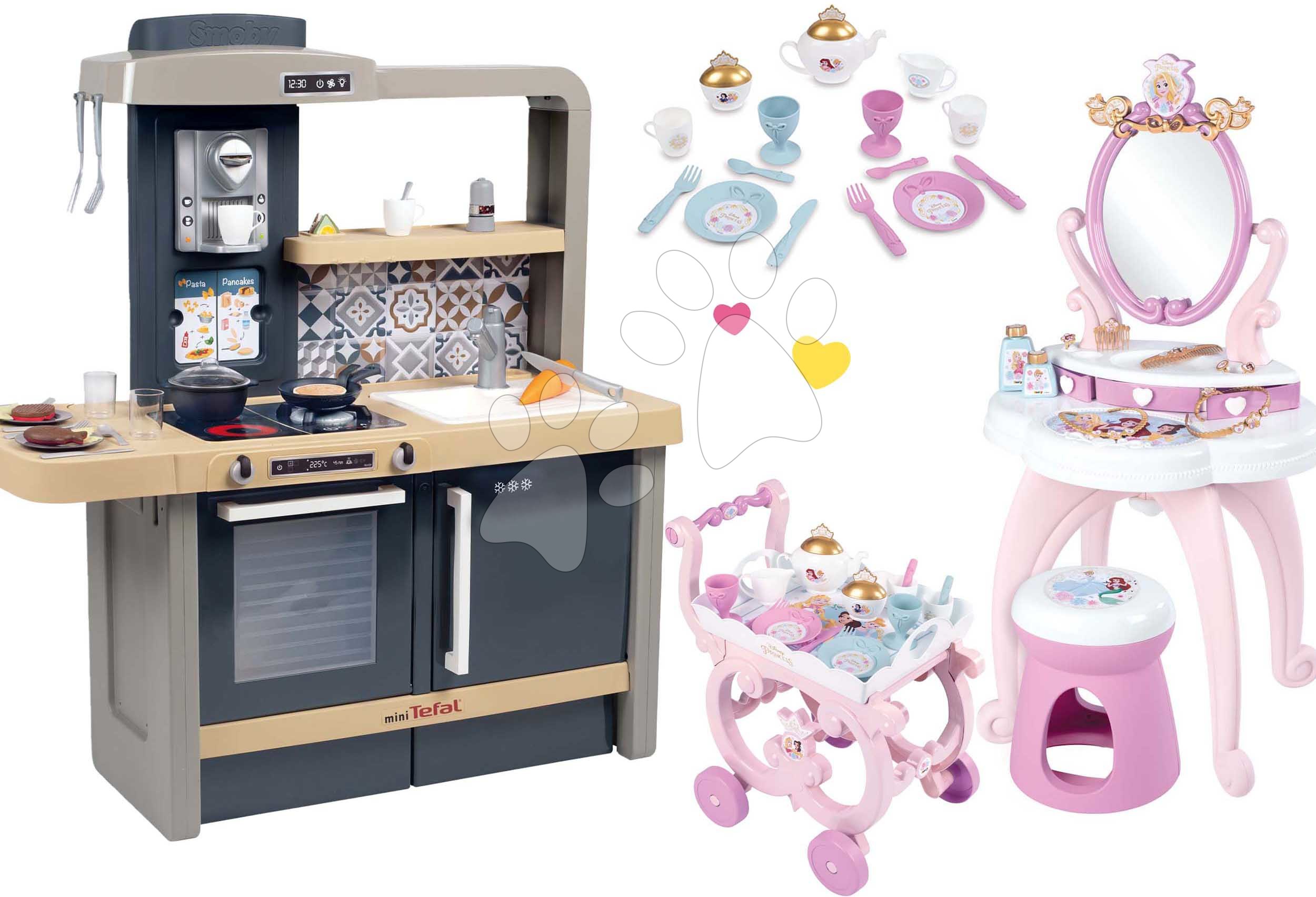 Kuchynka elektronická Tefal Evolutive s kozmetickým stolíkom Princezné a servírovacím vozíkom predstavuje originálnu súpravu hračiek pre deti od 3 rokov. Hračky v sete spolu dizajnovo a farebne ladia, vydržia vašim najmenším dlhé roky. Chlapci si vyskúšajú hry na šéfkuchárov a dievčatká sa potešia kozmetickému stolíku a servírovaciemu vozíku s veľkou čajovou súpravou s motívom Disney Princezné. Deti sa hravým spôsobom približujú svetu dospelých, získajú realistické zážitky, rozvíjajú si jemnú motoriku a logické myslenie. Set hračiek je vhodný aj pre viaceré deti, zlepšujú si komunikačné schopnosti a upevňujú sociálne väzby.