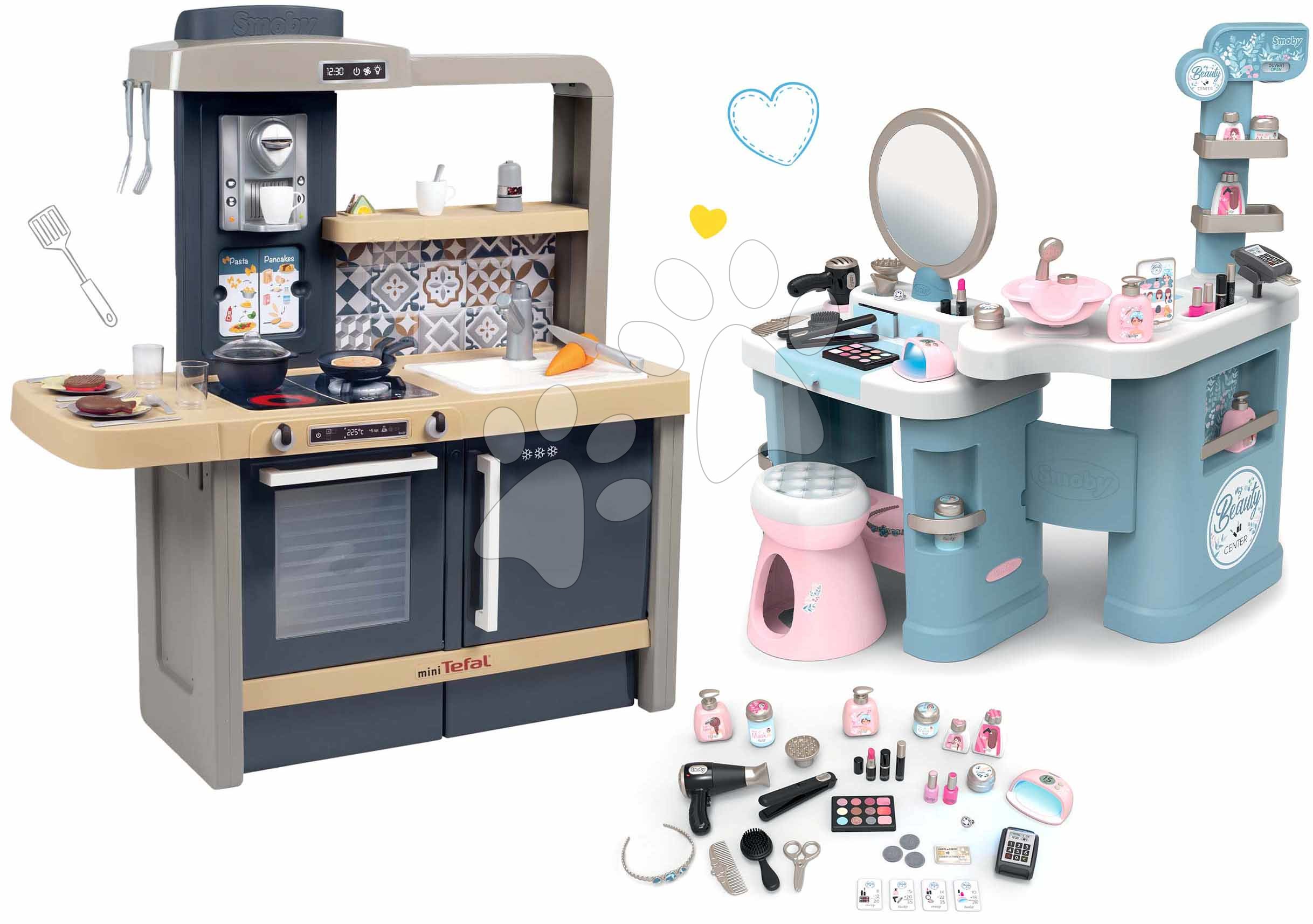 Set kuchynka elektronická s nastaviteľnou výškou Tefal Evolutive a kozmetický stolík Smoby elektronický 3v1 My Beauty Center