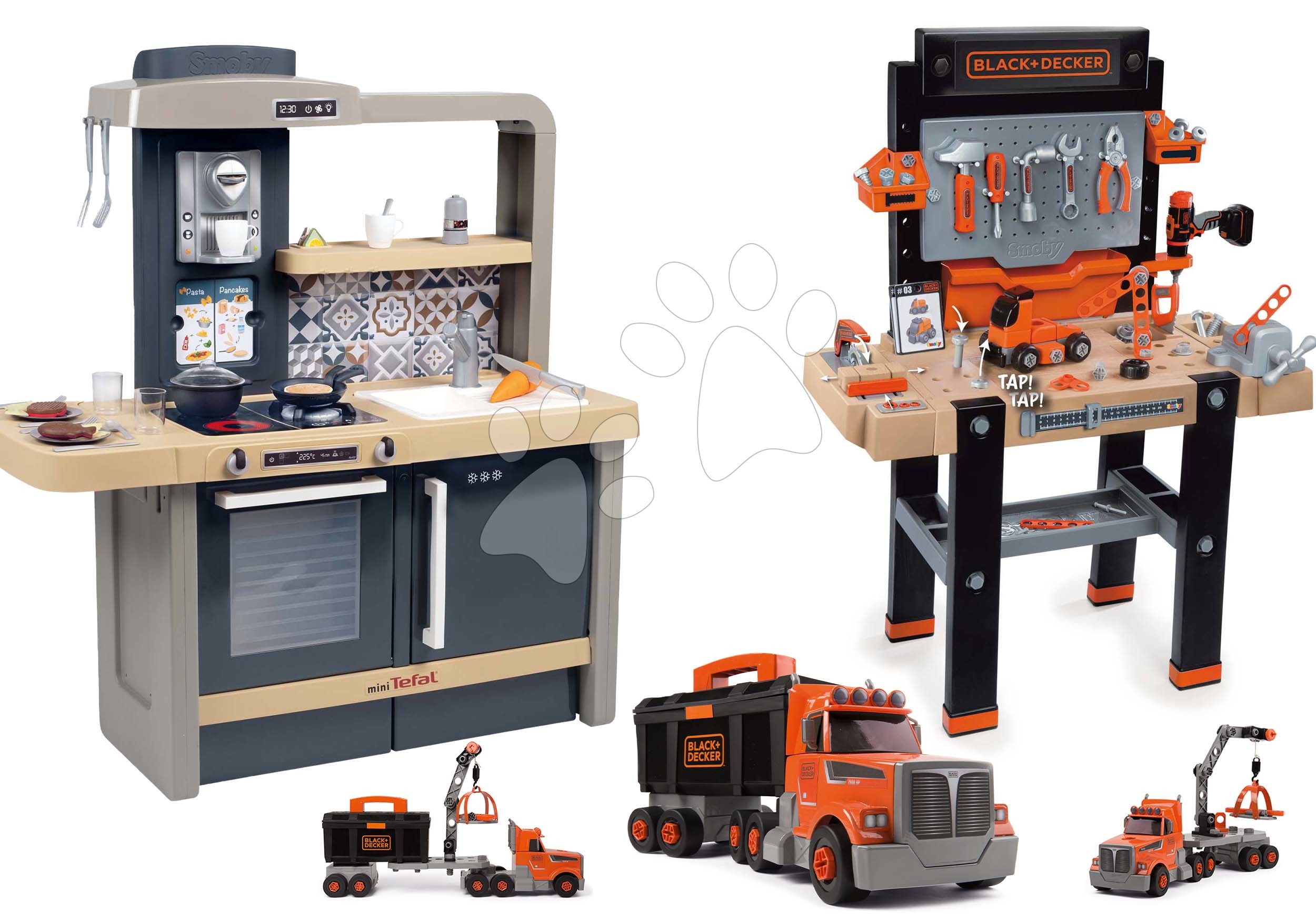 Kuchynka elektronická Tefal Evolutive a pracovná dielňa s kamiónom a kufríkom predstavujú skvelú súpravu hračiek pre všetky deti od 3 rokov, ktoré majú rady hry na profesie. Hračky v sete spolu dizajnovo a farebne ladia, vydržia vašim najmenším dlhé roky. Chlapci a dievčatá si vyskúšajú hry na šéfkuchárov, učia sa pripravovať chutné jedlo a takisto si môžu vyskúšať svoju šikovnosť pri hre na majstrov opravárov. Kvalitná sada hračiek podnecuje detskú predstavivosť a kreativitu, získavajú realistické zážitky. Hravým spôsobom sa približujú svetu dospelých, rozvíjajú si logické myslenie a komunikačné zručnosti pri hre s kamarátmi a súrodencami.