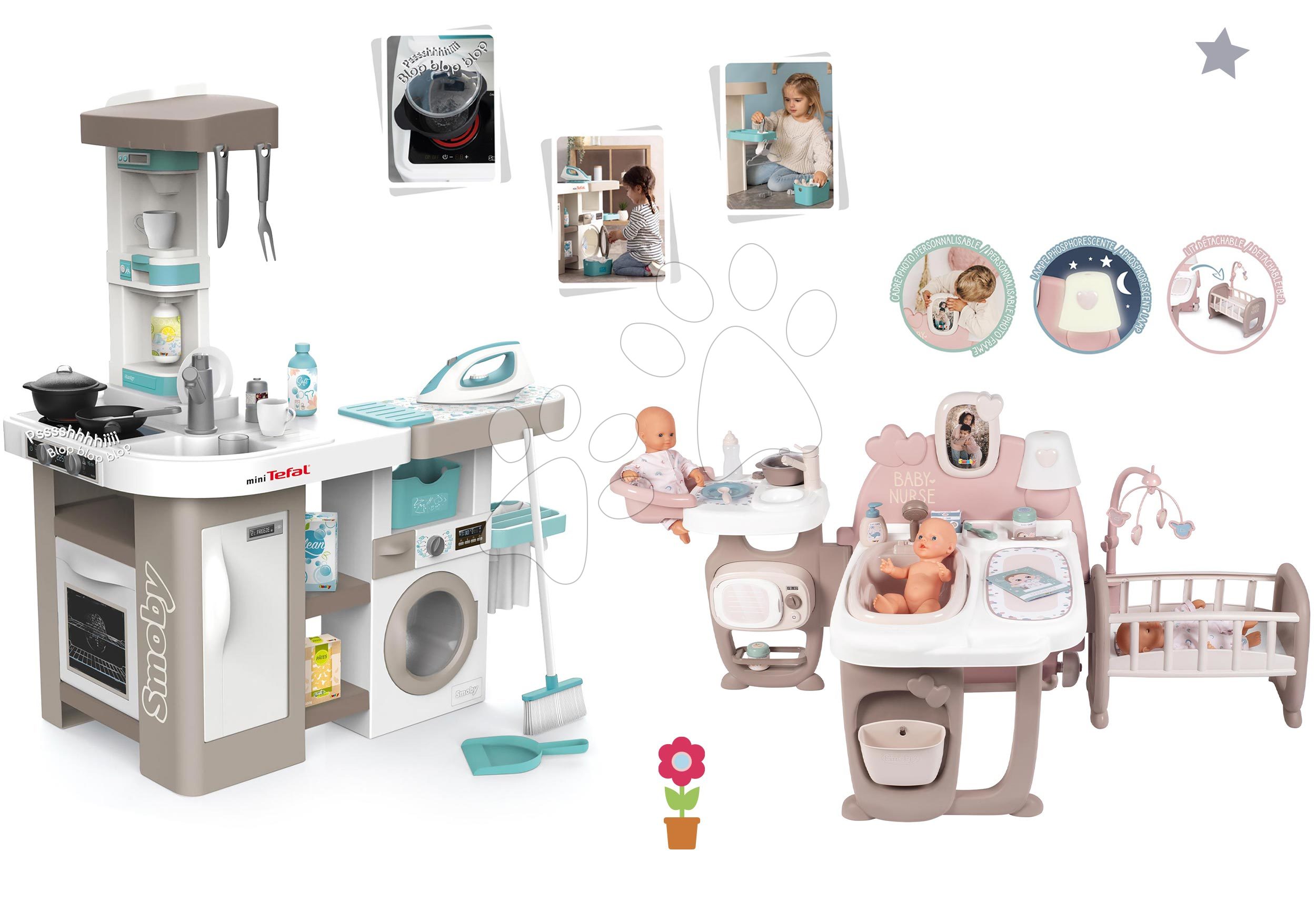 Kuchynka elektronická s práčkou a žehliacou doskou Tefal Cleaning Kitchen 360° Smoby so zvukmi a funkčnými spotrebičmi 36 doplnkov