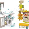 Set kuchynka elektronická s práčkou a žehliacou doskou Tefal Cleaning Kitchen 360° Smoby a drevená tabuľa magnetická s 2 stoličkami KidChair