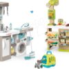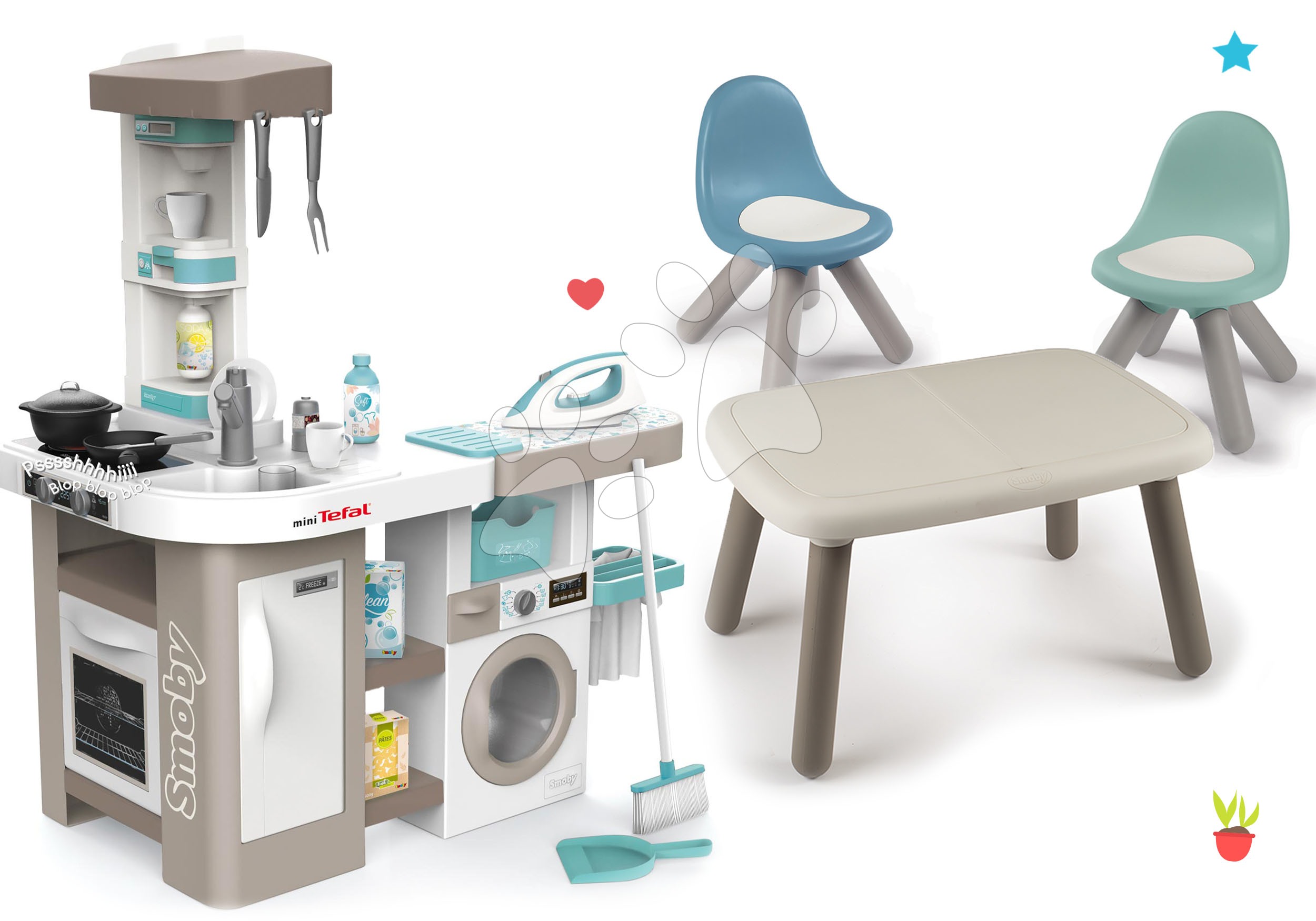 Set kuchynka elektronická s práčkou a žehliacou doskou Tefal Cleaning Kitchen 360° Smoby a stôl KidTable s 2 stoličkami KidChair