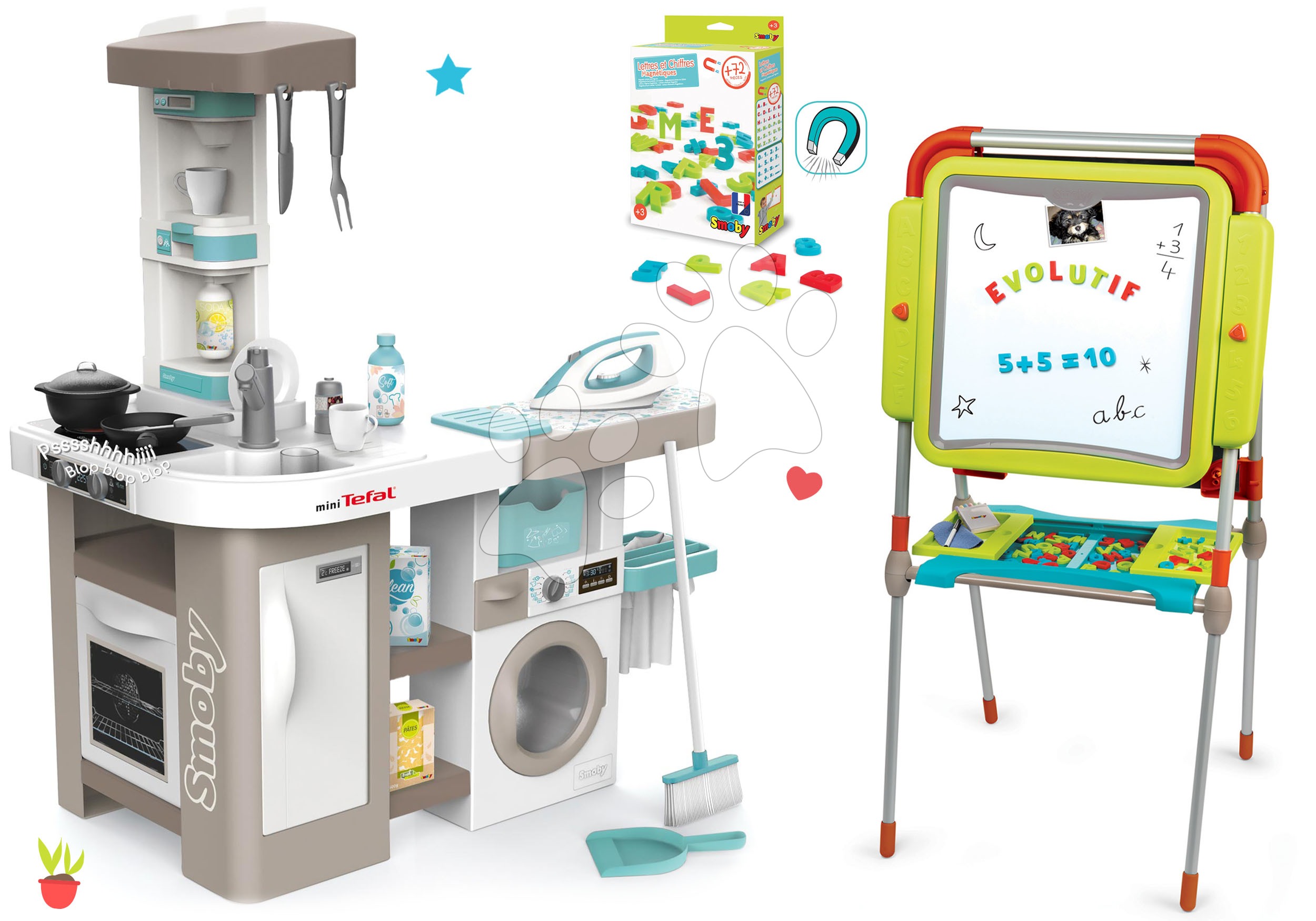 Kuchynka elektronická s práčkou a žehliacou doskou Tefal Cleaning Kitchen 360° Smoby so zvukmi a funkčnými spotrebičmi 36 doplnkov