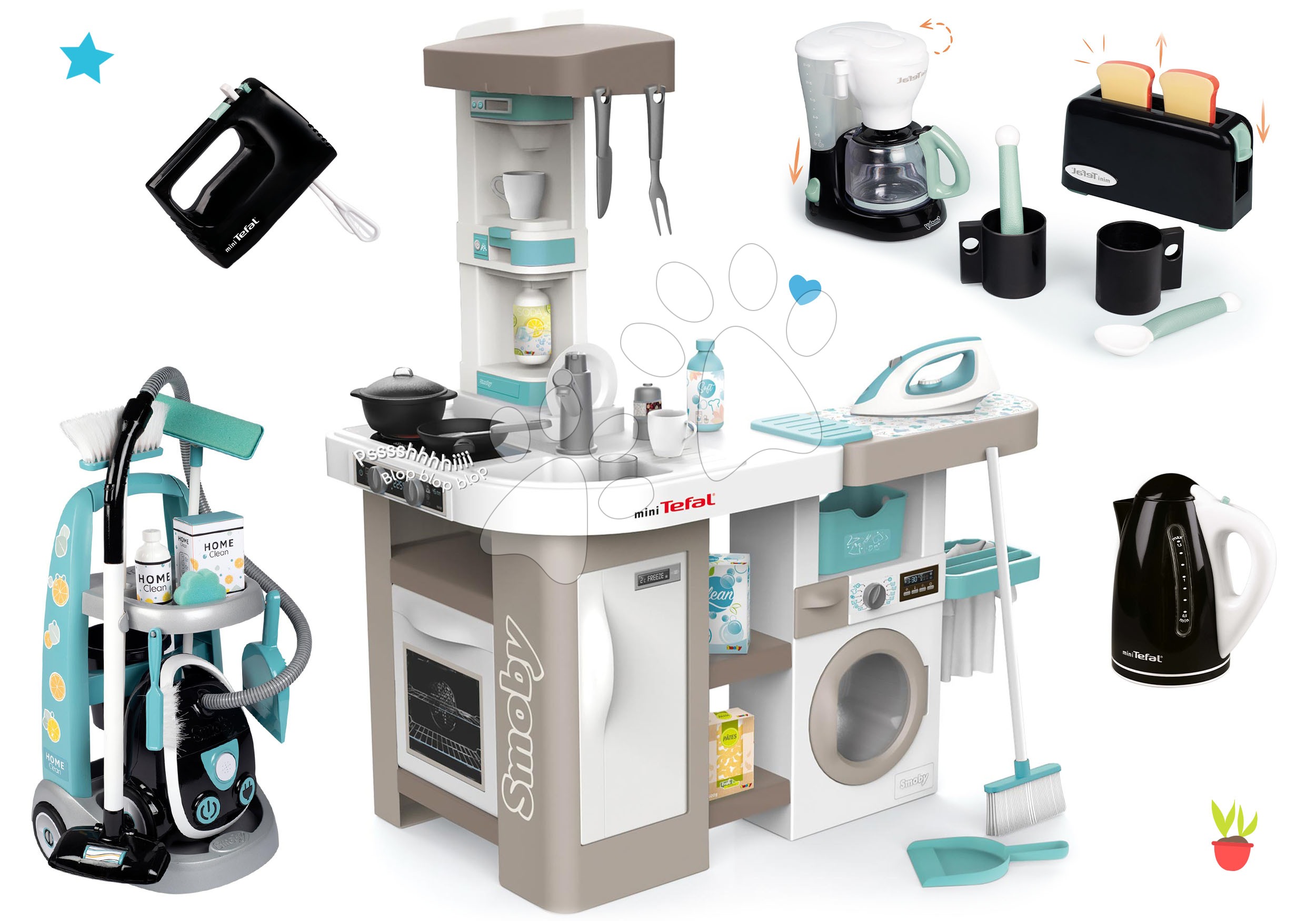 Kuchynka elektronická s práčkou a žehliacou doskou Tefal Cleaning Kitchen 360° Smoby so zvukmi a funkčnými spotrebičmi 36 doplnkov