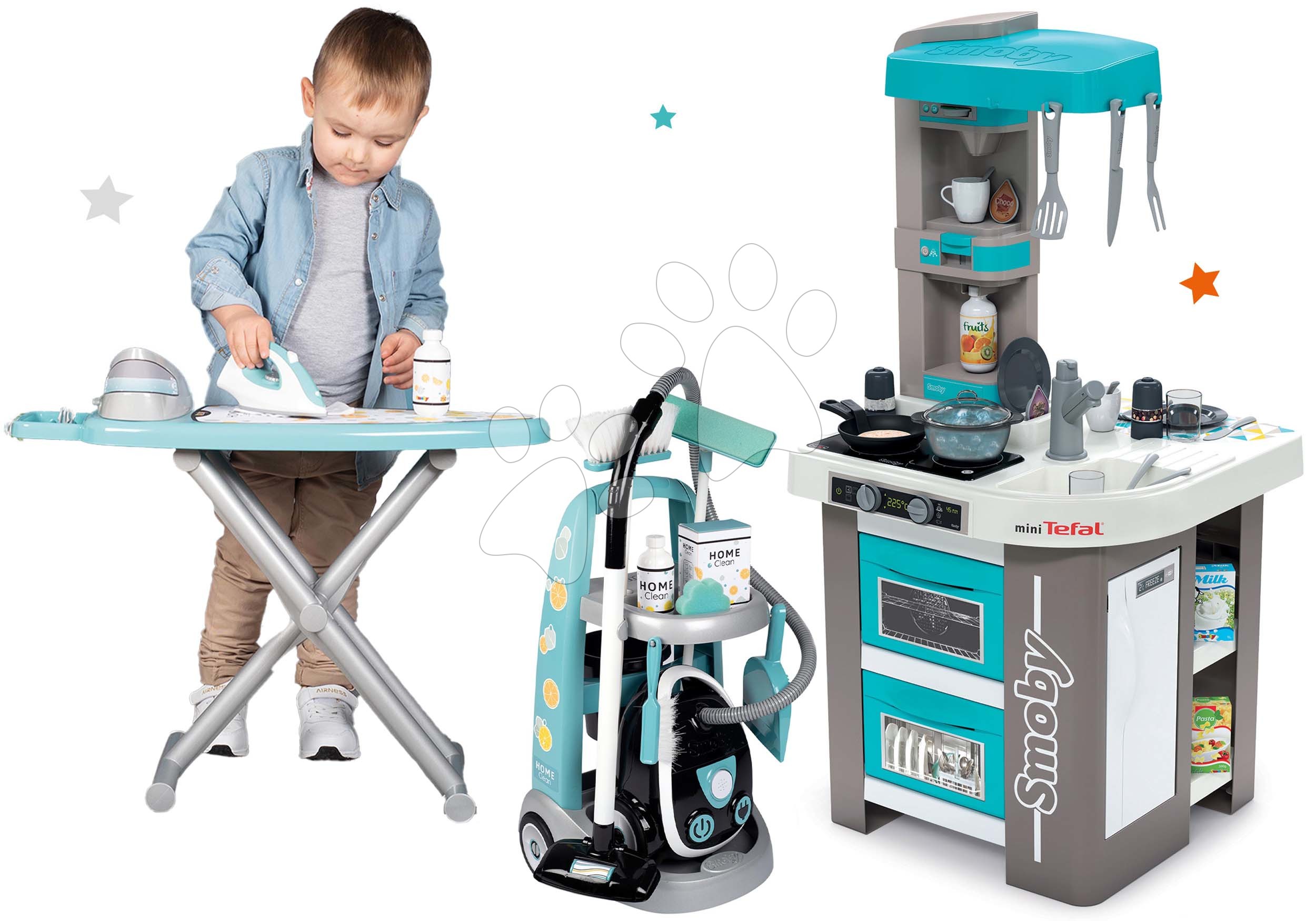 Kuchynka elektronická Tefal Studio 360° Bubble a žehliaca doska s elektronickou žehličkou a vozík s vysávačom je fantastický set hračiek pre deti od 3 rokov. Sadu hračiek máme v ponuke za akciovú cenu, takže poteší nielen deti, ale aj rodičov, ktorí výhodne ušetria. Hračky v sete spolu krásne ladia, ozdobia každú detskú izbičku a zahrá sa s nimi viacero detí, kamaráti aj súrodenci. Zahrajú sa hry na povolanie kuchárov a gazdinky, približujú sa svetu dospelých a rozvíjajú si svoje logické myslenie, fantáziu a predstavivosť vďaka francúzskemu Smoby, ktorý už roky prináša deťom najvyššiu kvalitu a prvotriedny vzhľad.