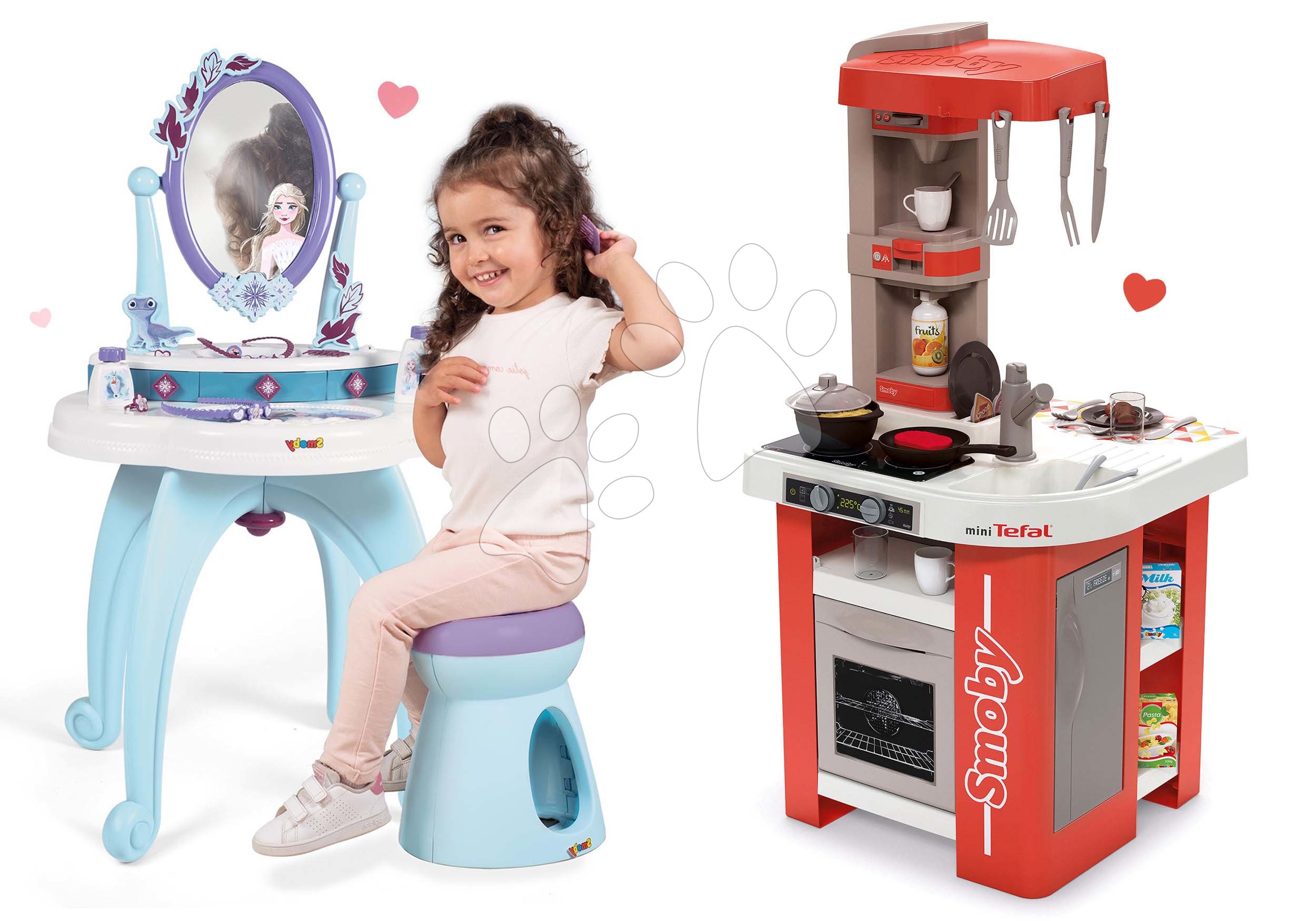 Kuchynka elektronická Tefal Studio 360° so zvukmi a kozmetický stolík Frozen s taburetkou je nadčasová sada pre chlapcov a dievčatá od 3 rokov. Set hračiek za zníženú cenu poteší nielen deti, ale aj rodičov, ktorí pri nákupe výrazne ušetria. Hračky spolu dizajnovo a farebne ladia, ozdobia každú detskú izbičku, zabavia sa s nimi viaceré deti, súrodenci aj kamaráti. Zahrajú sa hry na povolania kuchárov a kaderníčky, približujú sa svetu dospelých a rozvíjajú si svoje logické myslenie, fantáziu a predstavivosť. Francúzsky Smoby už roky prináša deťom hračky najvyššej kvality s prvotriednym vzhľadom.