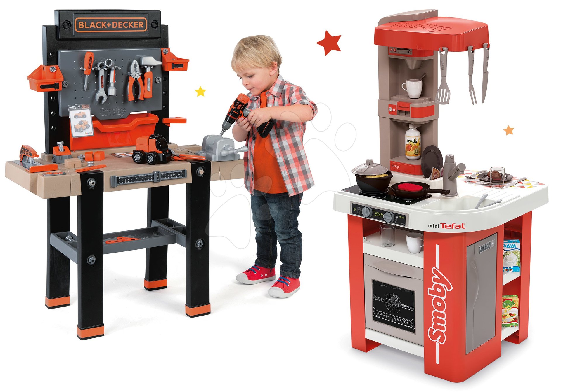 Kuchynka elektronická Tefal Studio 360° so zvukmi a pracovná dielňa s vŕtačkou a autíčkom je vynikajúca sada pre deti už od 3 rokov. Set hračiek za akciovú cenu zaujme nielen deti, ale aj rodičov, ktorí pri nákupe výrazne ušetria. Hračky spolu dizajnovo a farebne ladia, ozdobia každú detskú izbičku, zabavia sa s nimi viaceré deti, súrodenci aj kamaráti. Zahrajú sa hry na povolania kuchárov a mechanikov, približujú sa svetu dospelých a rozvíjajú si svoje logické myslenie, fantáziu a predstavivosť. Francúzsky Smoby už roky prináša deťom hračky najvyššej kvality s prvotriednym vzhľadom.