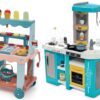 Elektronická kuchynka Tefal Studio 360° je moderná detská kuchynka pre všetkých malých kuchárov a kuchárky už od 3 rokov. Špičkový francúzsky dizajn vo farbe terakoty sa zapáči všetkým kuchárom a výborne sa zabavia s bohatou sadou 27 doplnkov. V tej sa nachádzajú lyžičky, nožíky, vidličky, tanieriky, poháriky, šálky, rôzne náplne do kávovaru, krabica s cestovinami, mliekom, napichovacia vidlička, nôž na krájanie a praktická naberačka. Veľkú radosť im spravia magické potraviny, panvica na otáčanie palaciniek a originálne cestoviny a zvuková funkcia pri varení.