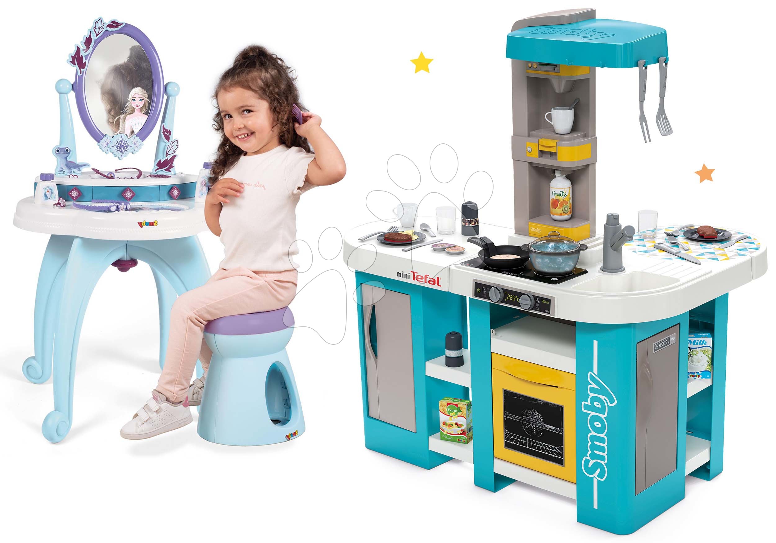 Kuchynka elektronická Tefal Studio 360° XL Bubble a kozmetický stolík Frozen 2v1 so stoličkou a doplnkami je skvelý set hračiek pre deti už od 3 rokov. Sadu hračiek ponúkame za zníženú cenu, takže poteší nielen deti, ale aj rodičov, ktorí výrazne ušetria. Hračky v sete spolu krásne ladia, ozdobia každú detskú izbičku a zabaví sa s nimi viacero detí, kamaráti aj súrodenci. Zahrajú sa hry na povolanie kuchárov a kaderníčky, približujú sa svetu dospelých a rozvíjajú si svoje logické myslenie, fantáziu a predstavivosť. Francúzsky Smoby už roky prináša deťom prvotriednu kvalitu a nádherný dizajn.