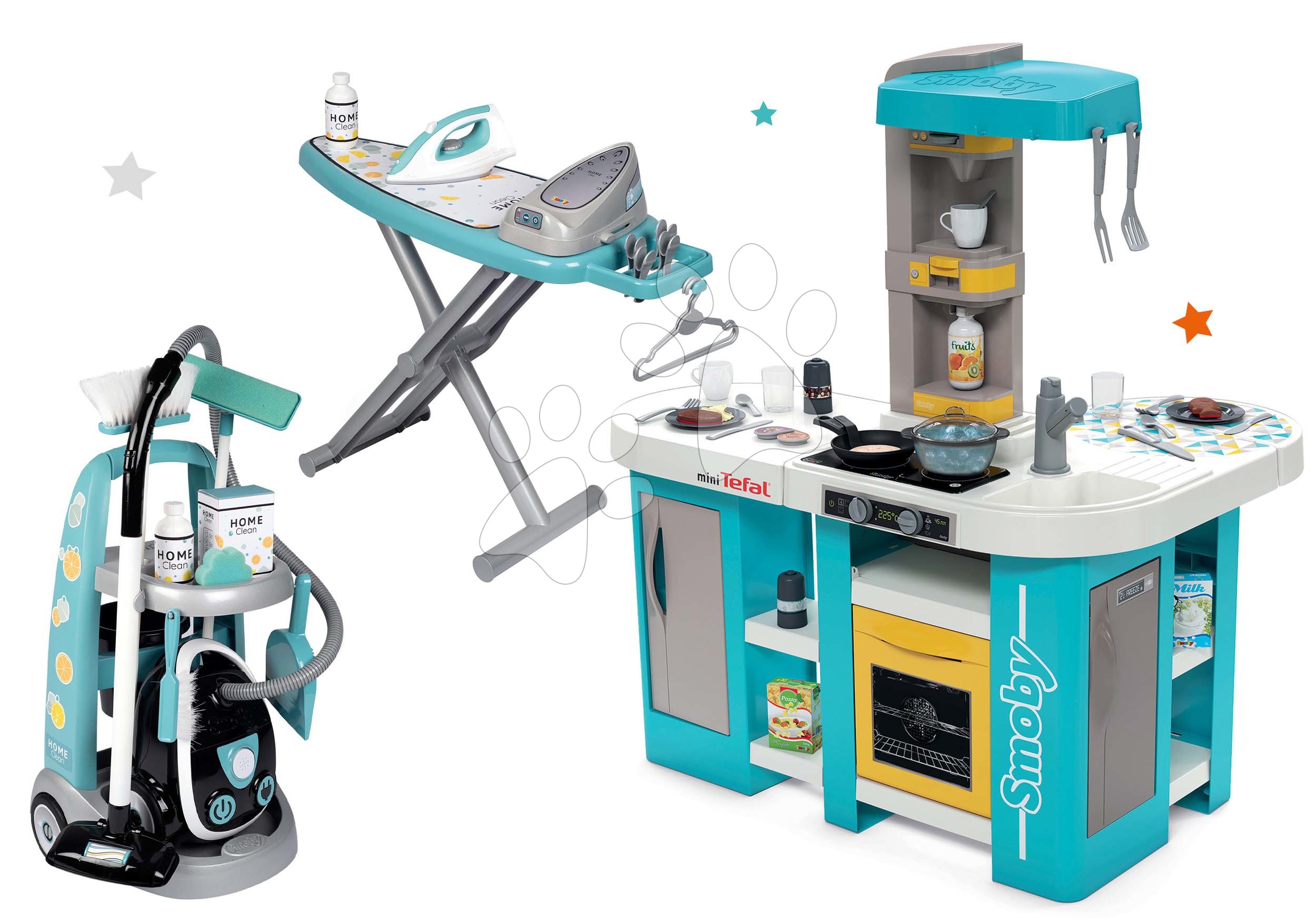 Kuchynka elektronická Tefal Studio 360° XL Bubble a upratovací vozík s vysávačom a žehliacou doskou je fantastický set hračiek pre deti od 3 rokov. Sadu hračiek ponúkame za zníženúcenu, takže poteší nielen deti, ale aj rodičov, ktorí výhodne ušetria. Hračky v sete spolu krásne ladia, ozdobia každú detskú izbičku a zabaví sa s nimi viacero detí, kamaráti aj súrodenci. Zahrajú sa hry na kuchárov a upratovačov, približujú sa svetu dospelých a rozvíjajú si svoje logické myslenie, fantáziu a predstavivosť vďaka francúzskemu Smoby, ktorý už roky prináša deťom najvyššiu kvalitu a prvotriedny vzhľad.