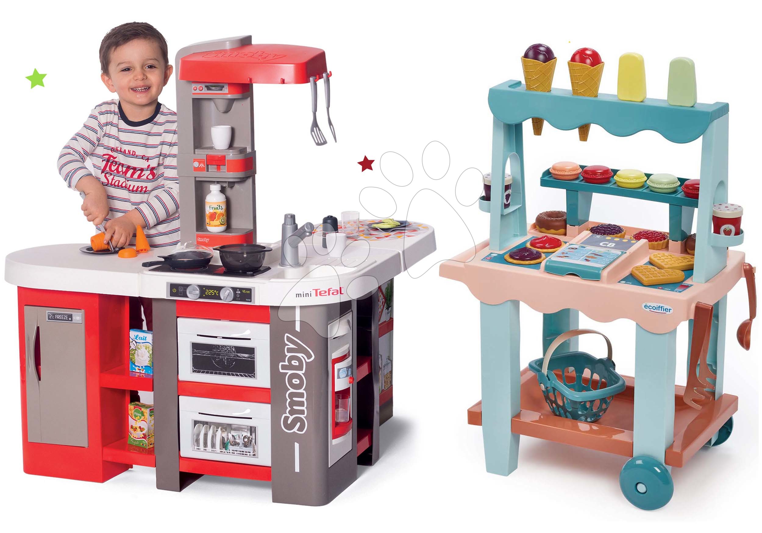 Kuchynka elektronická Tefal Studio 360° XXL Bubble a zmrzlinový stánok s vafľami je obľúbená kombinácia hračiek pre chlapcov aj dievčatá od 3 rokov. Sadu ponúkame za akciovú cenu, takže poteší nielen deti, ale aj rodičov, ktorí výhodne ušetria. Hračky v sete spolu krásne ladia, ozdobia každú detskú izbičku a zabaví sa s nimi viacero detí, kamaráti aj súrodenci. Zahrajú sa hry na povolanie kuchárov, približujú sa svetu dospelých a rozvíjajú si svoje logické myslenie, fantáziu a predstavivosť. Francúzsky Smoby a Écoiffier už roky prinášajú deťom najvyššiu kvalitu a prvotriedny vzhľad.