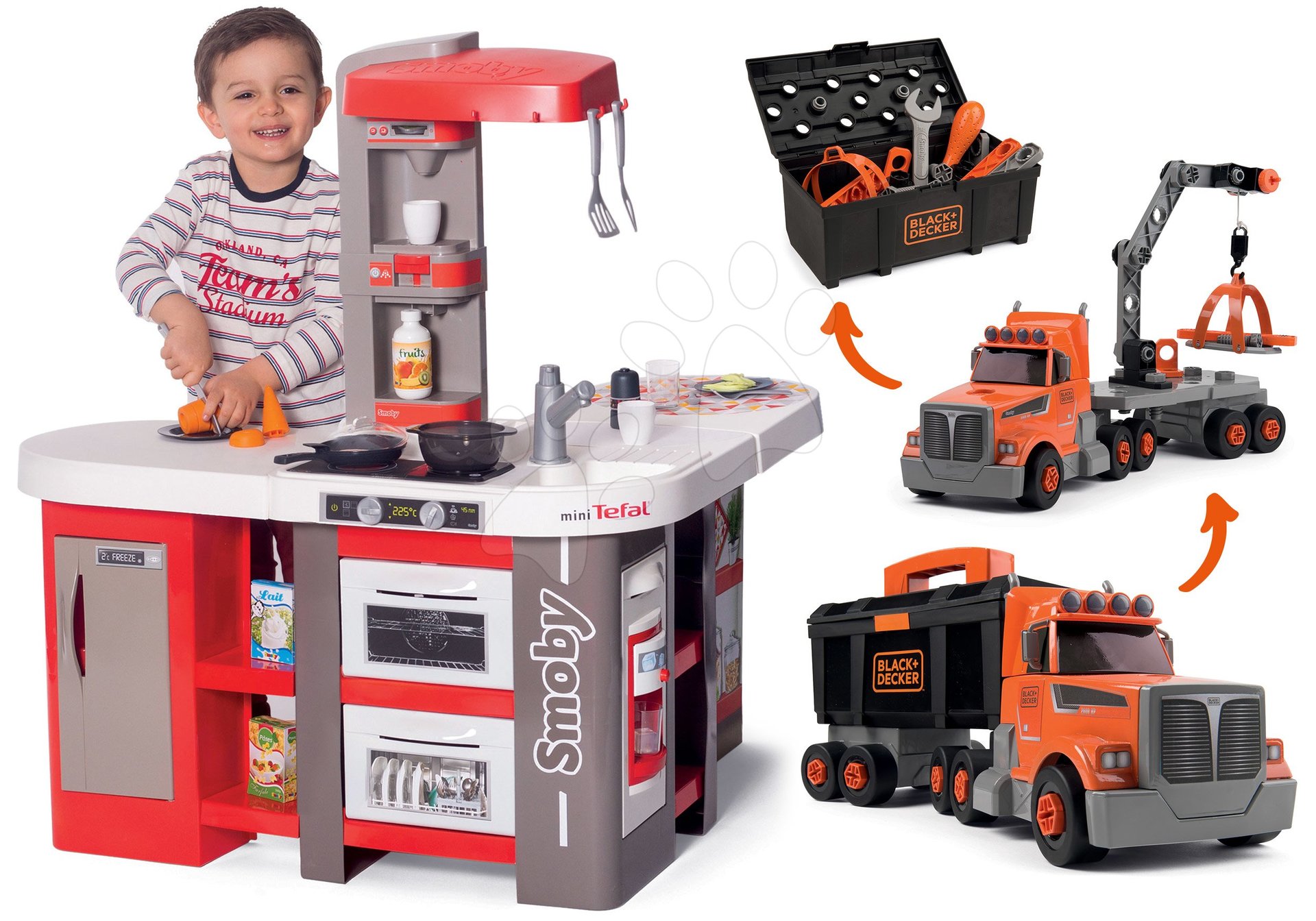 Kuchynka elektronická Tefal Studio 360° XXL Bubble a kamión s pracovným kufríkom Black&Decker sú výborným darčekom pre všetky deti už od 3 rokov. Sadu ponúkame za akciovú cenu, takže poteší nielen deti, ale aj rodičov, ktorí výhodne ušetria. Hračky v sete spolu krásne ladia, ozdobia každú detskú izbičku a zabaví sa s nimi viacero detí, kamaráti aj súrodenci. Zahrajú sa hry na povolanie kuchárov a mechanikov, približujú sa svetu dospelých a rozvíjajú si svoje logické myslenie, fantáziu a predstavivosť. Francúzsky Smoby už roky prináša deťom najvyššiu kvalitu a prvotriedny vzhľad.