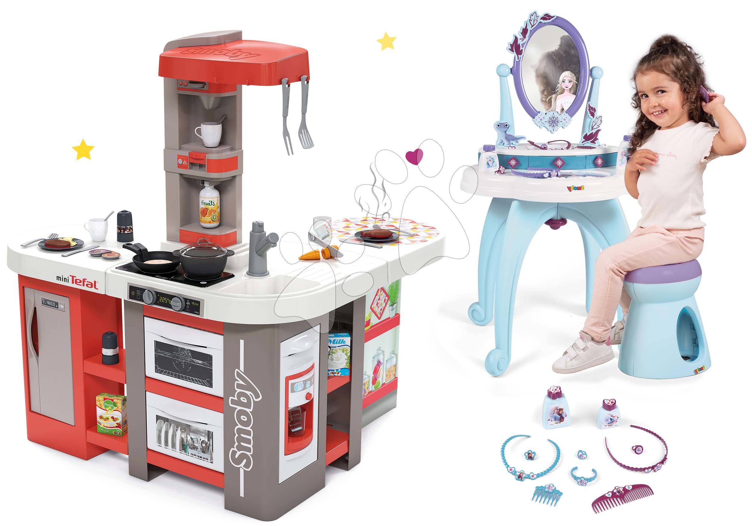 Set kuchynka elektronická Tefal Studio 360° XXL Bubble Smoby mrkvová a kozmetický stolík 2v1 Frozen Disney so stoličkou