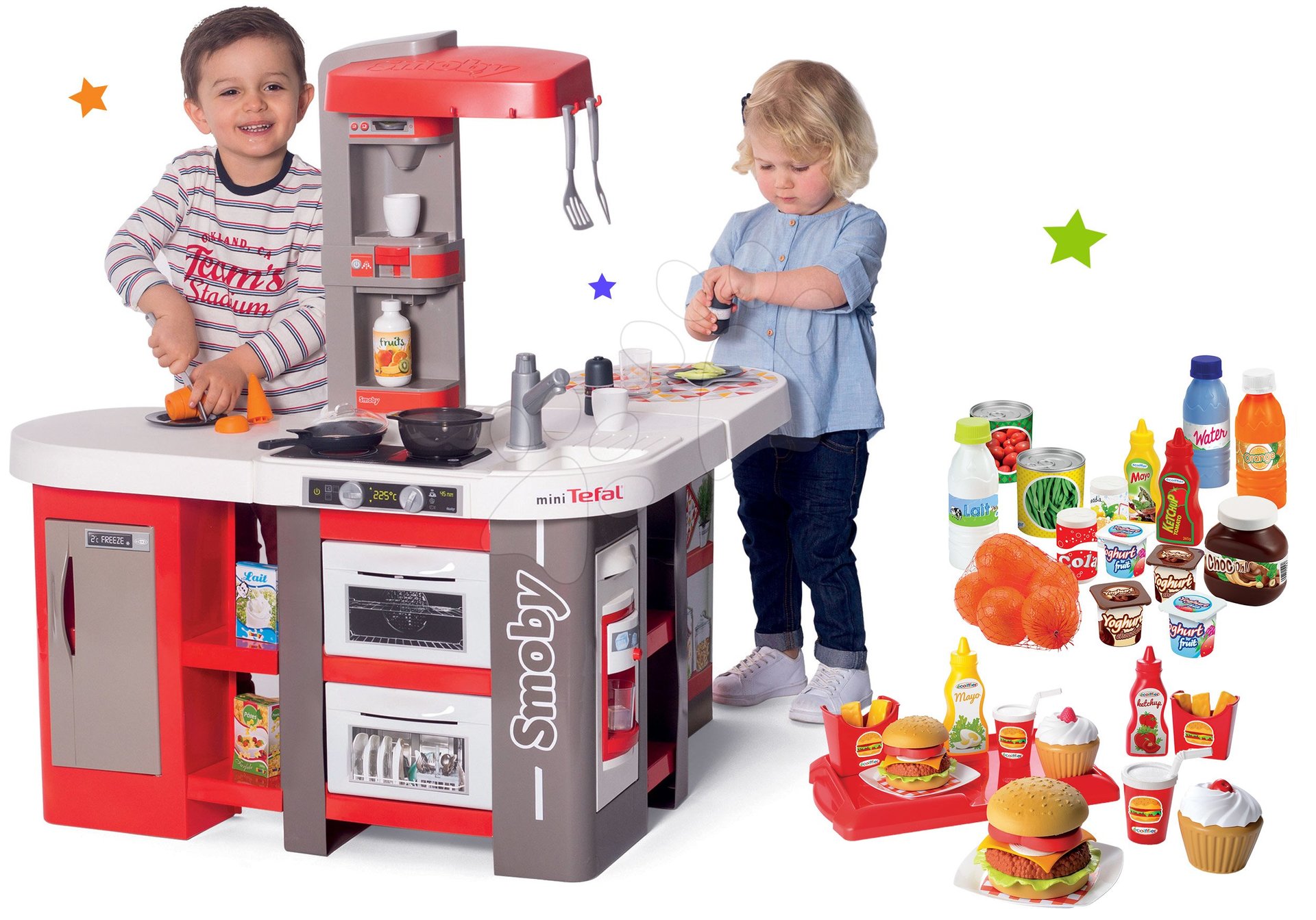 Kuchynka elektronická Tefal Studio 360° XXL Bubble a potraviny s hamburgermi na tácke je originálna sada hračiek pre deti už od 3 rokov. Sadu ponúkame za akciovú cenu, takže poteší nielen deti, ale aj rodičov, ktorí výhodne ušetria. Hračky v sete spolu krásne ladia, ozdobia každú detskú izbičku a zabaví sa s nimi viacero detí, kamaráti aj súrodenci. Zahrajú sa na kuchárov a hostiteľov, približujú sa svetu dospelých a rozvíjajú si svoje logické myslenie, fantáziu a predstavivosť. Francúzsky Smoby a Écoiffier už roky prinášajú deťom najvyššiu kvalitu a prvotriedny vzhľad.