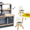Chlapci a dievčatá sa pri príprave jedál v kuchynke spoľahnú na chladničku s otvárateľnými dvierkami, rúru na pečenie a varnú dosku s otáčateľným gombíkom. Po obede môžu riady umyť v praktickom dreze s kohútikom a odpadky sa naučia triediť vďaka priehradkám pre klasický a recyklovateľný odpad. Nadčasová kuchynka je vybavená množstvom úložného priestoru a praktickými poličkami, do ktorých sa uloží kuchynské náradie a doplnky. Kuchynka stojí na stabilných nohách a jej rozmery sú 74*30*96 cm s výškou pracovnej dosky 50 cm.