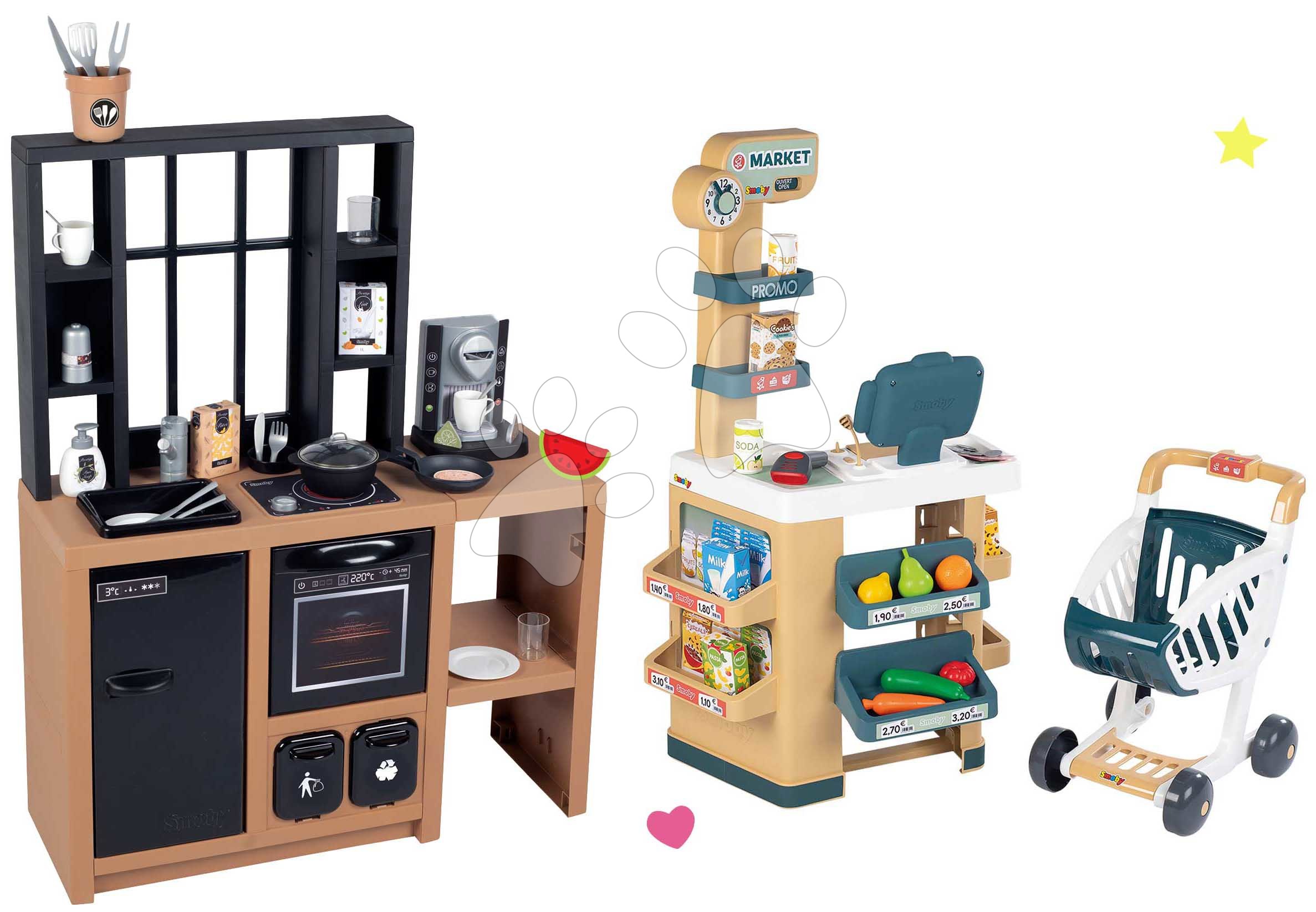Set kuchynka moderná Loft Industrial Kitchen Smoby a obchod Market s pokladňou a skenerom so zvukom a svetlom