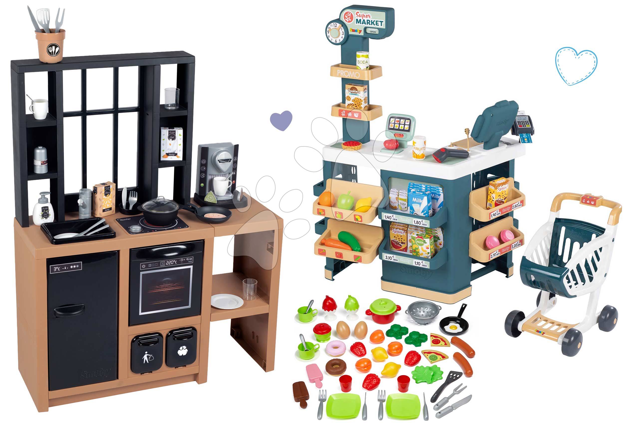 Set kuchynka moderná Loft Industrial s elektronickým obchodom Smoby s vozíkom a potravinami