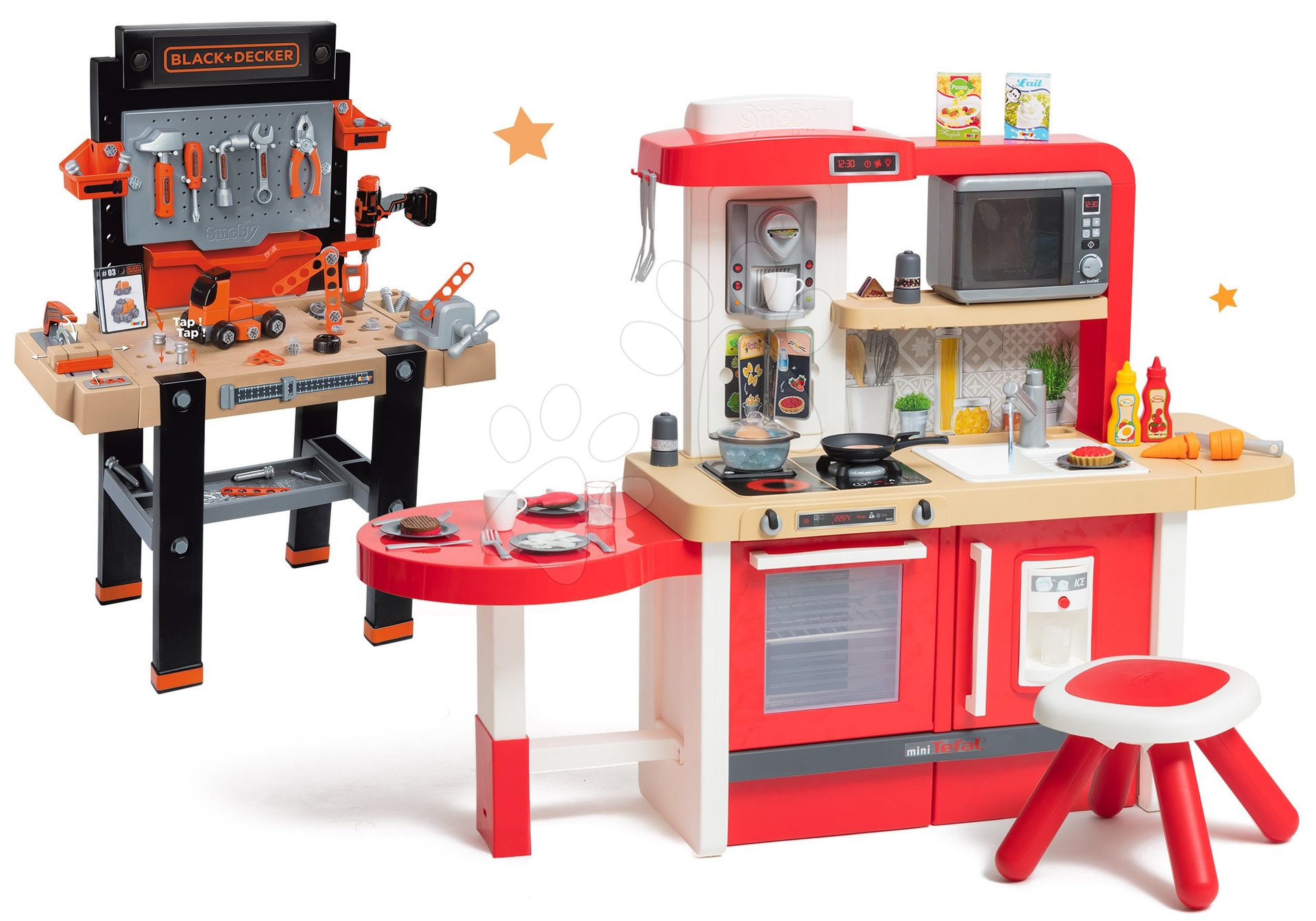 Rastúca kuchynka s tečúcou vodou a mikrovlnkou Evolutive a pracovná dielňa Black+Decker s autíčkom zaujme a rozveselí každé dieťa už od 3 rokov. Sadu hračiek ponúkame za akciovú cenu, takže poteší nielen deti, ale aj rodičov, ktorí pri nákupe ušetria. Hračky v sete spolu dizajnovo a farebne ladia, ozdobia každú detskú izbičku. Deti sa zahrajú na šéfkuchárov a mechanikov, vďaka čomu sa približujú svetu dospelých a rozvíjajú si svoje logické myslenie, fantáziu a predstavivosť. Francúzsky Smoby už roky prináša deťom hračky najvyššej kvality s prvotriednym vzhľadom.