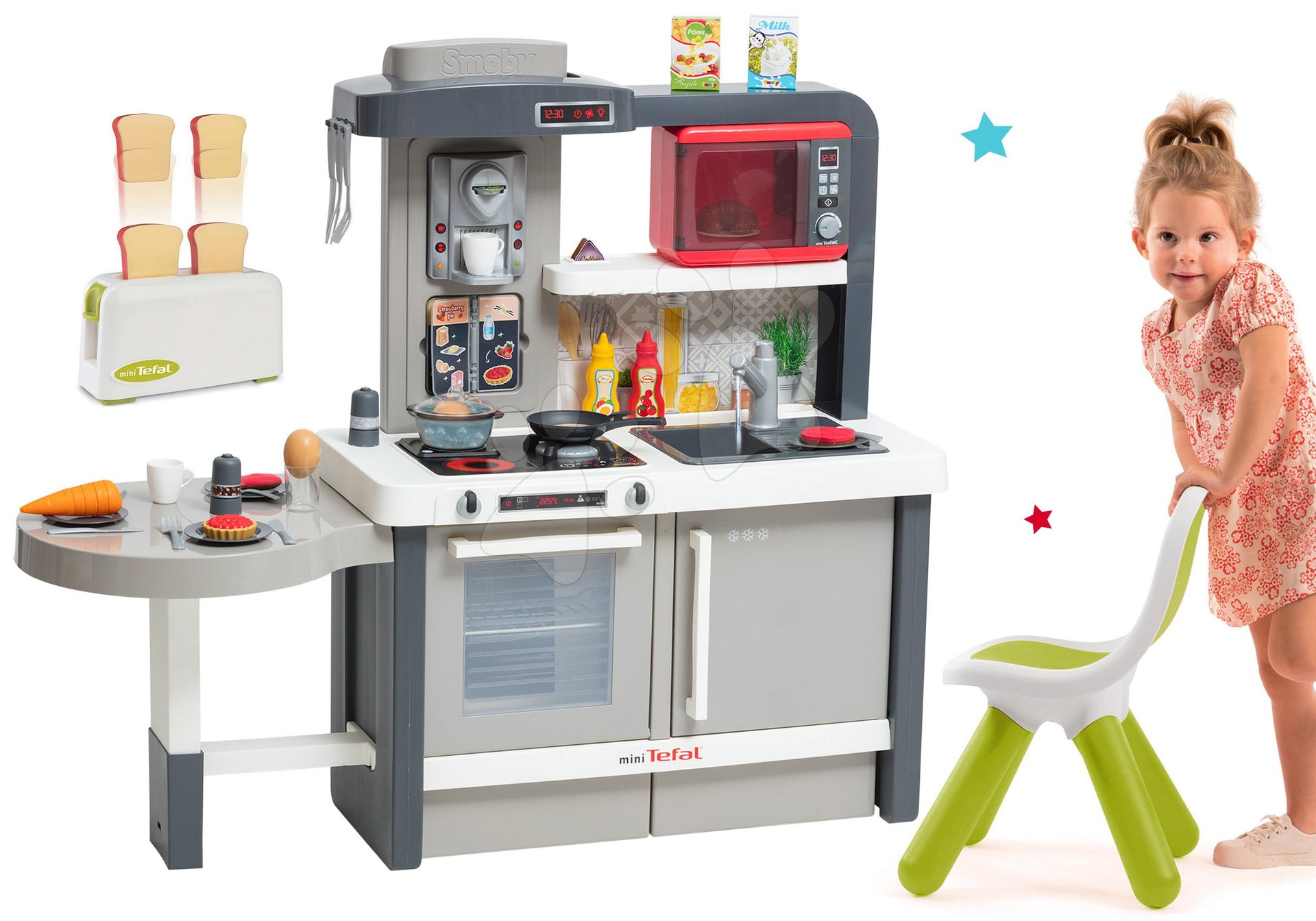 Rastúca kuchynka s tečúcou vodou a mikrovlnka Tefal s hriankovačom a stoličkou KidChair predstavujú skvelú voľbu pre všetky deti už od 3 rokov. Sadu hračiek ponúkame za zníženú cenu, takže poteší nielen deti, ale aj rodičov, ktorí ich kúpou ušetria. Hračky v sete spolu dizajnovo a farebne ladia, ozdobia každú detskú izbičku. Deti sa zahrajú na kuchárov a hostiteľov, vďaka čomu sa približujú svetu dospelých a rozvíjajú si svoje logické myslenie, fantáziu a predstavivosť. Francúzsky Smoby po dlhé roky prináša deťom hračky najvyššej kvality s prvotriednym vzhľadom.