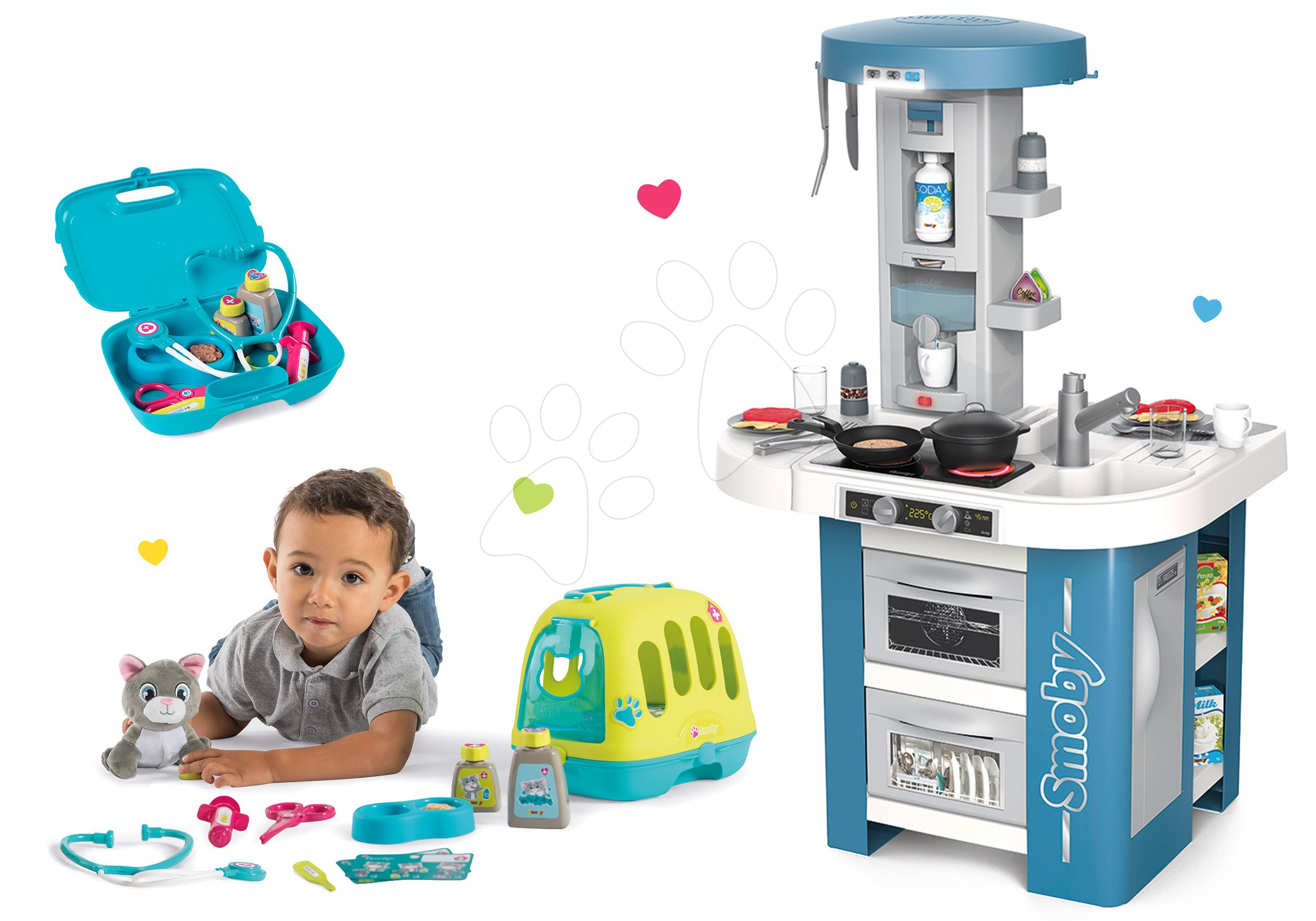 Set kuchynka s technickým vybavením Tech Edition Smoby elektronická a veterinársky kufrík s mačičkou so 4 zvukmi a 10 doplnkov