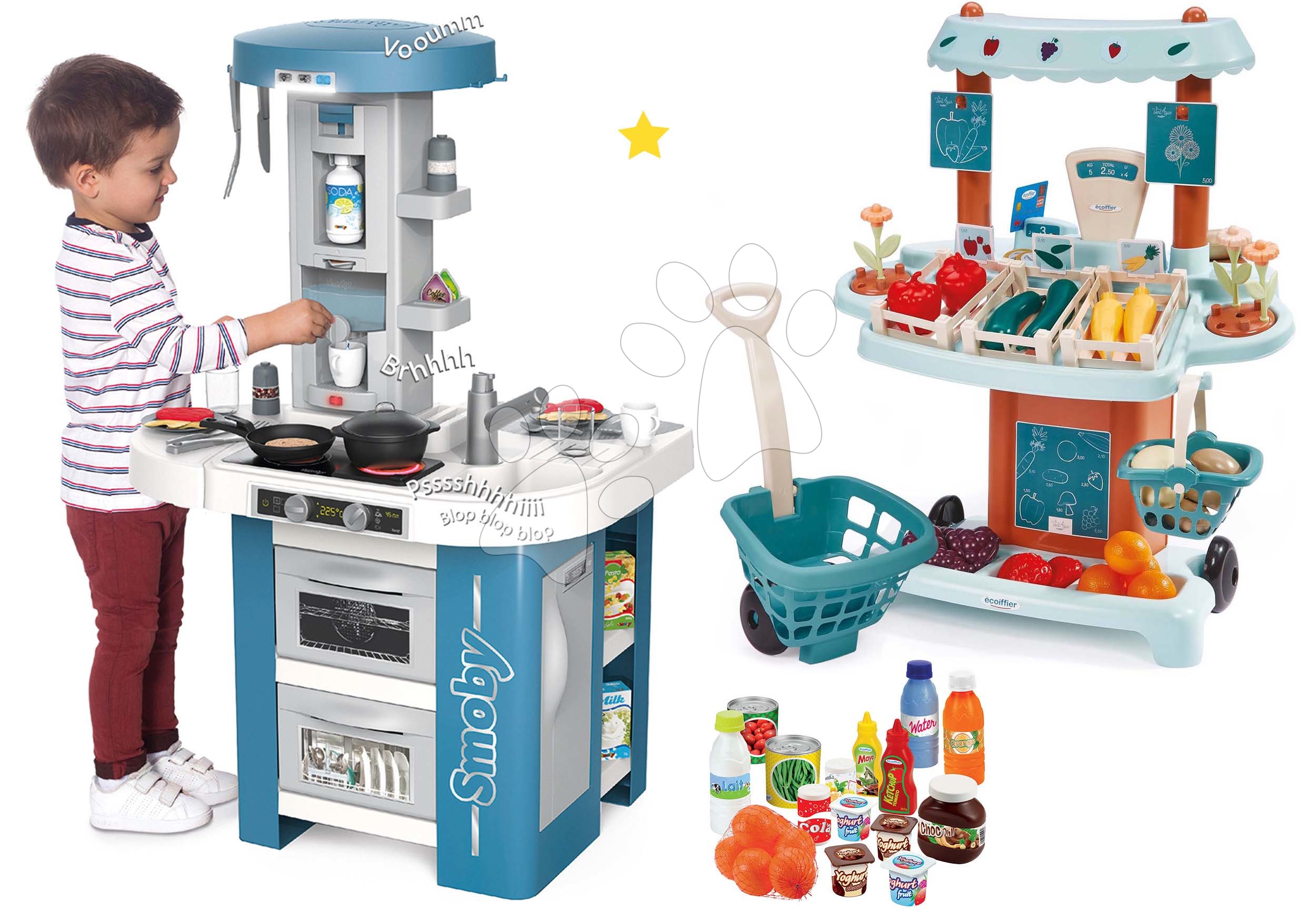 Set kuchynka s technickým vybavením Tech Edition Smoby elektronická s BIO zeleninovým stánkom a potravinami