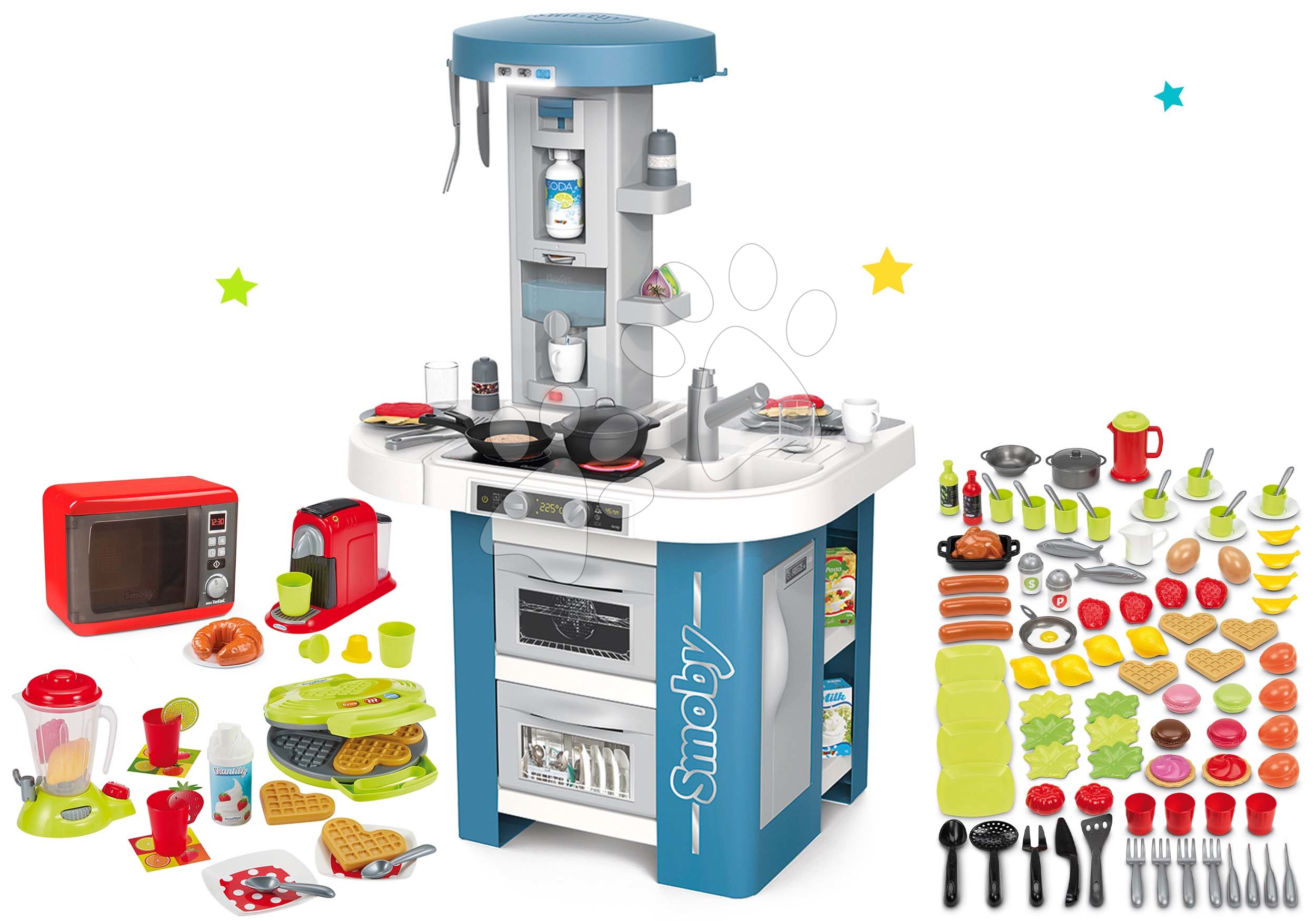 Kuchynka s technickým vybavením Tech Edition od francúzskeho Smoby je špičková hračka pre všetkých chlapcov a dievčatá od 3 rokov. Dizajnová modrá kuchynka je vybavená elektronickým modulom, vďaka ktorému disponuje mnohými zvukovými a svetelnými funkciami. Malí kuchári a kuchárky objavia originálnu varnú dosku s červeným podsvietením a 2 zvukovými efektmi. Na kávovare sa po stisnutí tlačidla zjaví svetielko upozorňujúce na ohrievanie vody a keď zhasne, dieťa opäť stlačí gombík a vypočuje si zvuk ako pri skutočnom dávkovaní tekutiny. Nad kávovarom je zásobník, ktorý môžete reálne naplniť vodou, takže dieťa získa ešte realistickejší zážitok. Praktický digestor s háčikmi v sebe skrýva funkciu osvetlenia a šikovné deti využijú pri varení aj 2-stupňovú ventiláciu so zvukom simulujúcim funkciu výparníka.