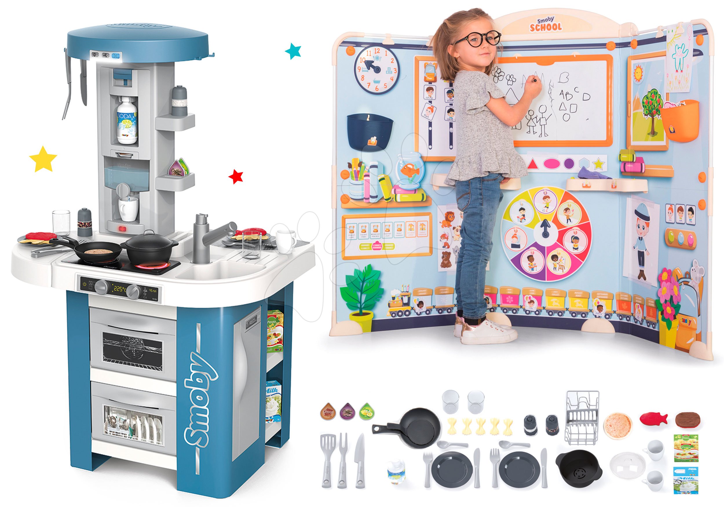 Elektronická kuchynka s technickým vybavením Tech Edition a škola pre škôlkárov Hra na učiteľa a žiaka spolu tvoria nadčasovú súpravu hračiek, ktorá všestranne rozvíja vaše deti už od 3 rokov. Sadu hračiek ponúkame za zníženú cenu, takže poteší nielen deti, ale aj rodičov, ktorí ušetria. Hračky Smoby farebne aj dizajnovo ladia, ozdobia každú detskú izbičku a zabaví sa s nimi viacero detí, kamaráti aj súrodenci. Zahrajú sa na kuchárov, učiteľov a žiakov, hravým spôsobom sa približujú svetu dospelých. Pri hre na povolania si rozvíjajú aj logické myslenie, jemnú motoriku a zlepšujú si komunikačné schopnosti.