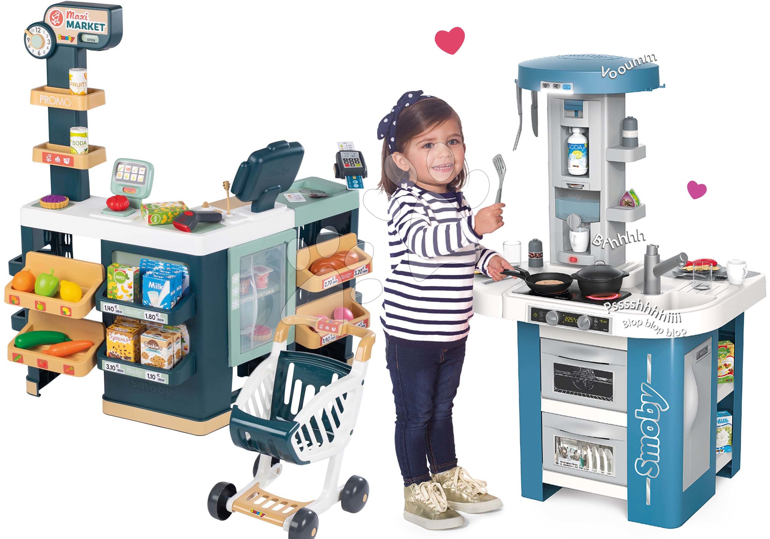 Elektronická kuchynka s technickým vybavením Tech Edition a supermarket Maxi Market s chladiacim boxom spolu tvoria špičkovú hernú súpravu pre všetky neposedné deti od 3 rokov. Set hračiek ponúkame za akciovú cenu, takže poteší nielen deti, ale aj rodičov, ktorí výhodne ušetria. Hračky Smoby spolu krásne ladia, ozdobia každú detskú izbičku a zabaví sa s nimi viacero detí, kamaráti aj súrodenci. Zahrajú sa na kuchárov a obchodníkov, hravým spôsobom sa približujú svetu dospelých. Pri hre na povolania si rozvíjajú aj logické myslenie, jemnú motoriku a učia komunikovať so svojimi zákazníkmi.