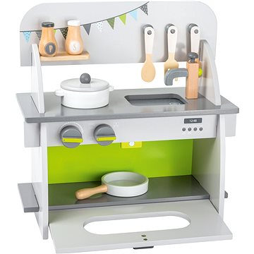 Detská kuchynka Small Foot Kuchynka Compact: Máte doma náruživého kuchára alebo kuchárku, ale nemáte dostatok miesta pre detskú kuchynku? Riešením pre vás bude tento herný set kuchynky Compact značky Small Foot. So svojimi priestorovo minimalistickými požiadavkami sa zmestí naozaj takmer kamkoľvek. Kuchynka vrátane všetkého príslušenstva a náčinia je vyrobená zo FSC 100 % certifikovaného dreva. Je vybavená rúrou s otváracími dvierkami a otáčacími cvakacími gombíkmi. Na zadnej stene je umiestnená malá polička a háčiky na zavesenie náčinia. V kuchynke Compact jednoducho nájdete všetko potrebné ako v skutočnej kuchyni. Aj v malých hracích priestoroch možno urobiť veľkú radosť a variť ako naozajstný šéfkuchár. Hračka je vhodná pre deti od troch rokov. Kľúčové vlastnosti herného setu Small Foot kuchynka CompactVhodná do malých hracích priestorovSmall Foot kuchynka Compact s príslušenstvomV balení hrniec s pokrievkou, panvica, obracačka, lyžica, nôž a soľnička s koreničkouRúra s otváracími dvierkamiVyrobené zo FSC 100 % certifikovaného…