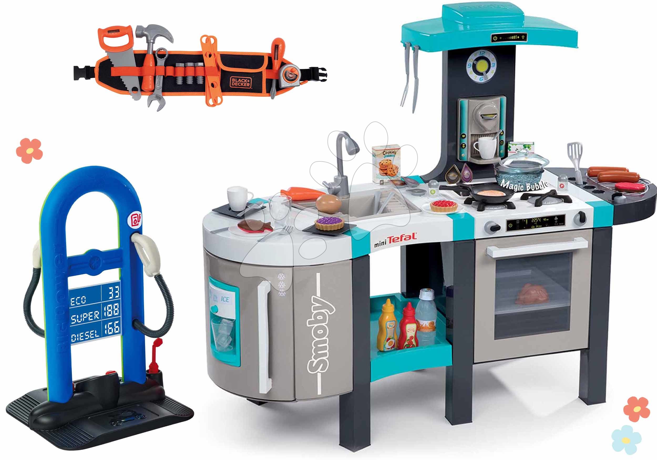 Smoby detská kuchynka elektronická Tefal French Touch Bubble Smoby a benzínová pumpa Autá 3 s autíčkom na opasku 311206-9