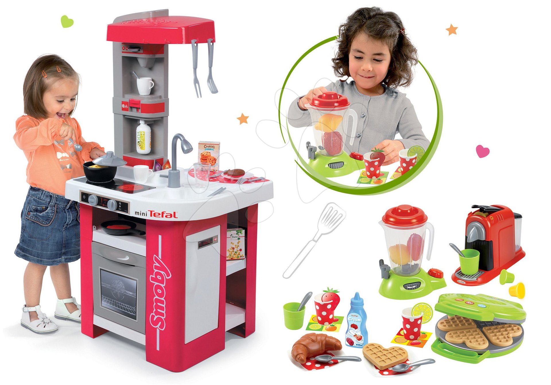 Detská kuchynka Tefal Studio od francúzskeho výrobcu Smoby je teraz spolu s vaflovačom 100% Chef Écoiffier v jednom cenovo zvýhodnenom sete. Tento set poteší všetky deti, ktoré milujú hru na povolania a svojou lákavou zvýhodnenou sumou poteší tiež peňaženky rodičov. S kvalitnými hračkami Smoby a Écoiffier sa o bezpečnosť vašich detí nemusíte báť. Farebne zladené hračky navyše podnecujú detskú fantáziu, rozvíjajú jemnú motoriku, jazykové a komunikačné schopnosti všetkých detí.