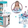 Detská kuchynka Tefal Studio Bubble od Smoby je dokonalou kuchynkou pre deti, vhodná od 3 rokov. Je prevedená v elegantnej farebnej kombinácii tyrkysovej a šedej farby. Výhodou tejto kuchynky je prístupnosť z každej strany, a tak je vhodná na hru pre viac detí. Deti si hrou cibria motorické schopnosti, hmatovú citlivosť a koordináciu pohybov a hra s kuchynkou je pre nich veľká zábava. Kuchynka Smoby je vybavená až 26 kusmi unikátnych a užitočných doplnkov. Medzi ne patria tanieriky s príbormi, kuchynské náradie, čarovný hrniec s pokrievkou, náhradné kapsule do kávovaru, panvica, šálky na kávu či umývačka riadu.