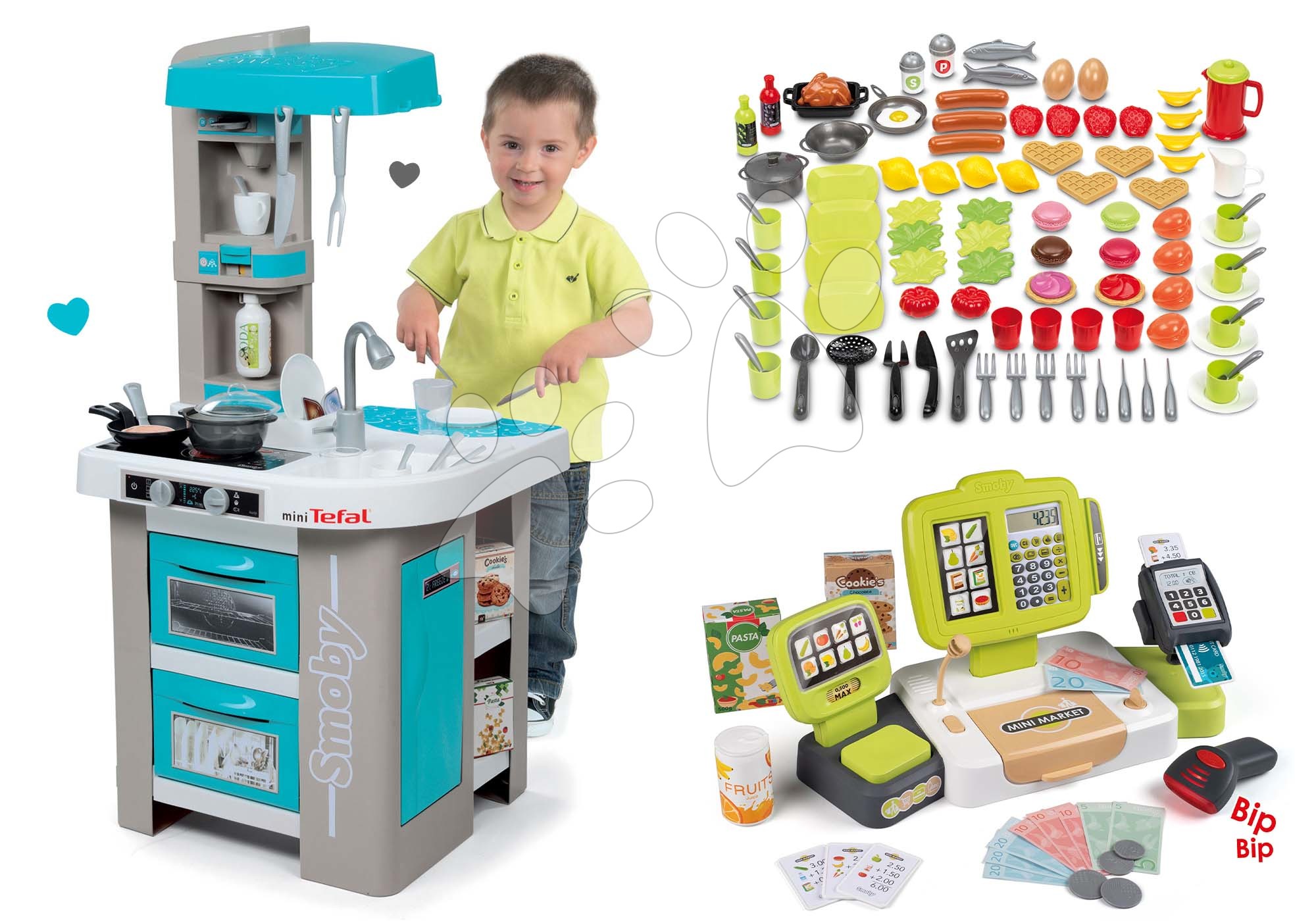 Smoby set elektronická kuchynka Tefal Studio Bubble tyrkysová s pokladňou a 100 ks potravín 311023-6