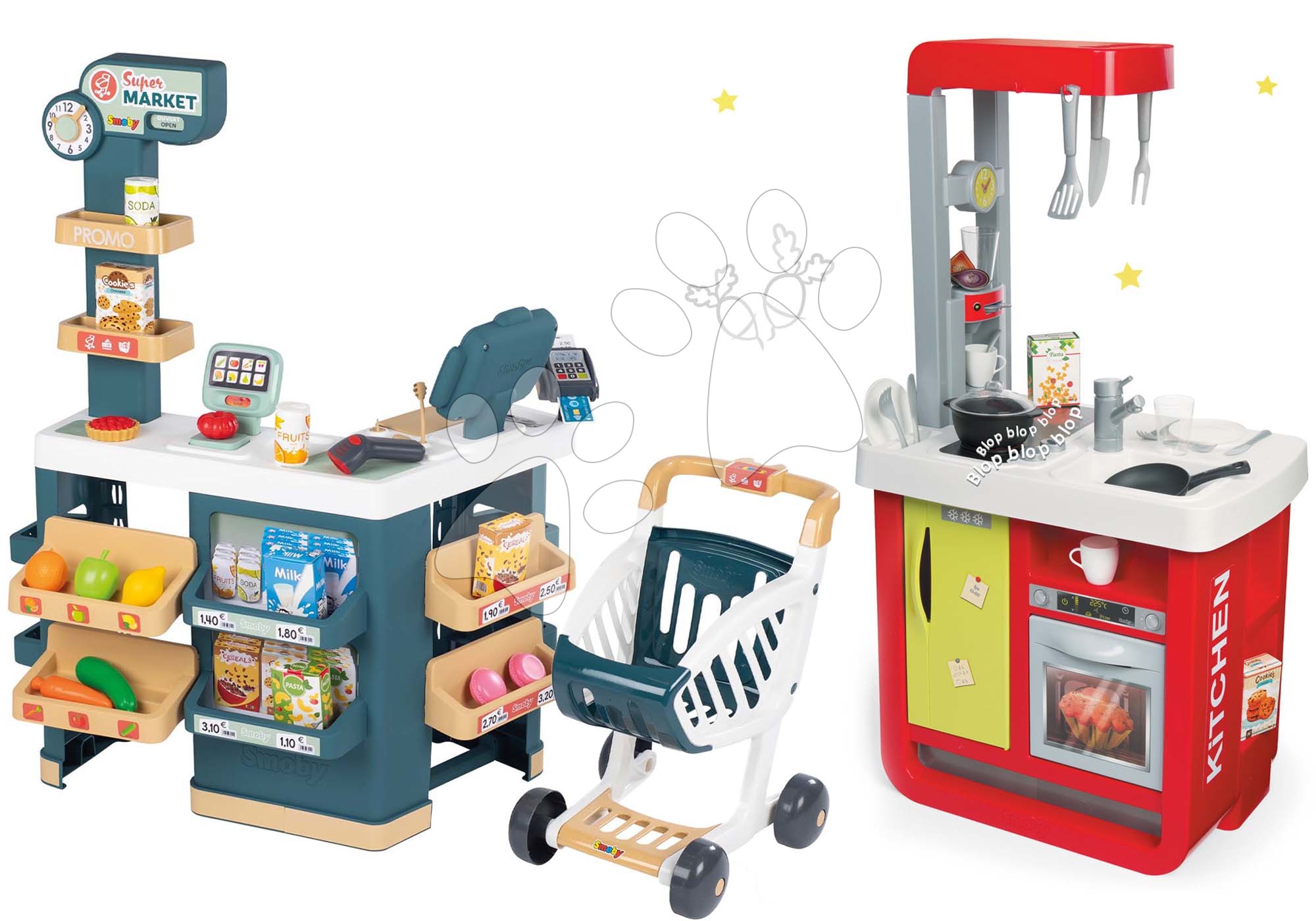 Elektronická kuchynka Cherry Special je teraz v cenovo výhodnom sete spolu s obchodom Supermarket pre deti. Tieto jedinečné hračky pochádzajú od spoľahlivého francúzskeho výrobcu Smoby. V jeho hračkách sa spája francúzsky šarm s rokmi overenou kvalitou a bezpečnosťou. Premyslené detaily a bohatá výbava kuchynky i obchodíka zaručene upúta každé dieťatko. Potešte svoje deti kúpou 2 hračiek naraz a svoju peňaženku ich výhodnou cenou.