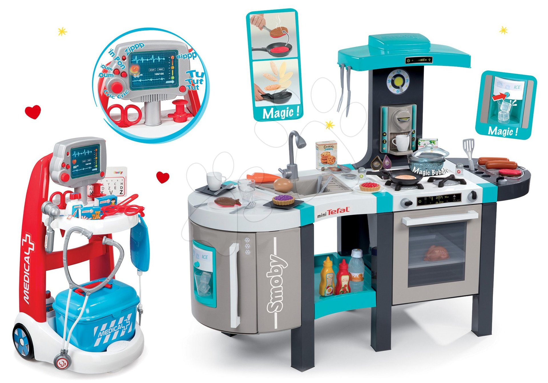 Smoby set kuchynka elektronická Tefal French Bubble a lekársky vozík s modrým kufríkom 311206-4