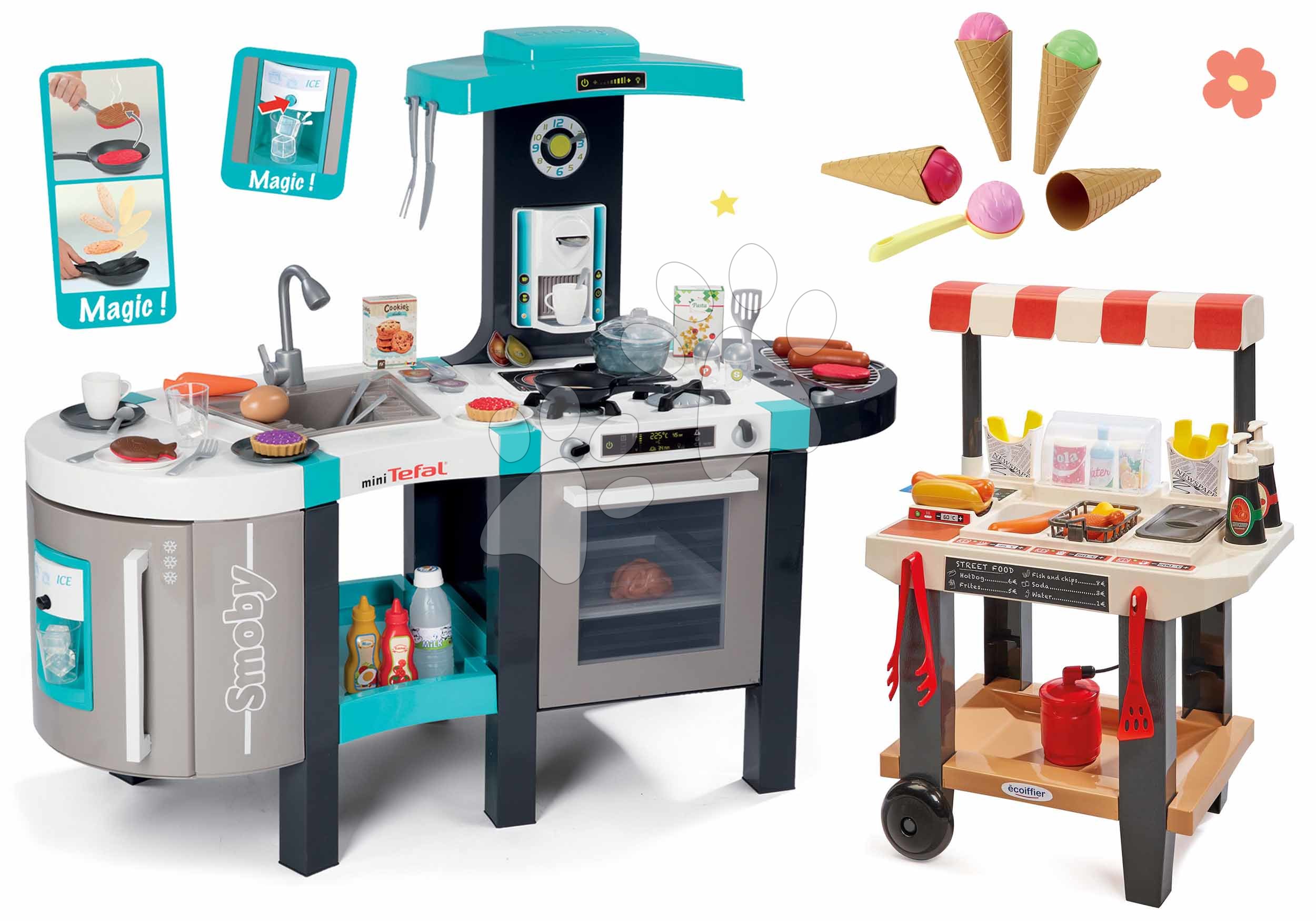 Každý rodič chce pre svoje dieťa tie najlepšie hračky, ktoré navzájom ladia a môže ich pri hraní kombinovať. Set hračiek, elektronická kuchynka Tefal French Touch Bubble Smoby a stánok s rýchlym občerstvením a zmrzlinou je vhodný pre všetky deti od 3 rokov. Cenovo výhodný set hračiek od renomovanej francúzskej spoločnosti Smoby predstavuje dokonalé spojenie kvality a rozumnej ceny.