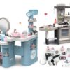 Elektronická detská kuchyna Tefal French Bubble Smoby sa so svojimi 46 doplnkami radí medzi profesionálne detské kuchynky a obľúbi si ju každé dieťa od 3 rokov. Tyrkysovo-šedá kuchynka má moderný a elegantný vzhľad, vďaka ktorému sa bude dokonale hodiť do každej detskej izby. Z kuchynky vyžaruje originálny francúzsky dizajn, ktorý rovnako očarí ako rodičov, tak aj ich deti. Bohatá výbava 46 doplnkov obsahuje: príbory, tanieriky, soľničku, koreničku, fľašku kečupu a majonézy, fľašu na vodu, poháriky s tanierikmi, repliky surovín a potravín.