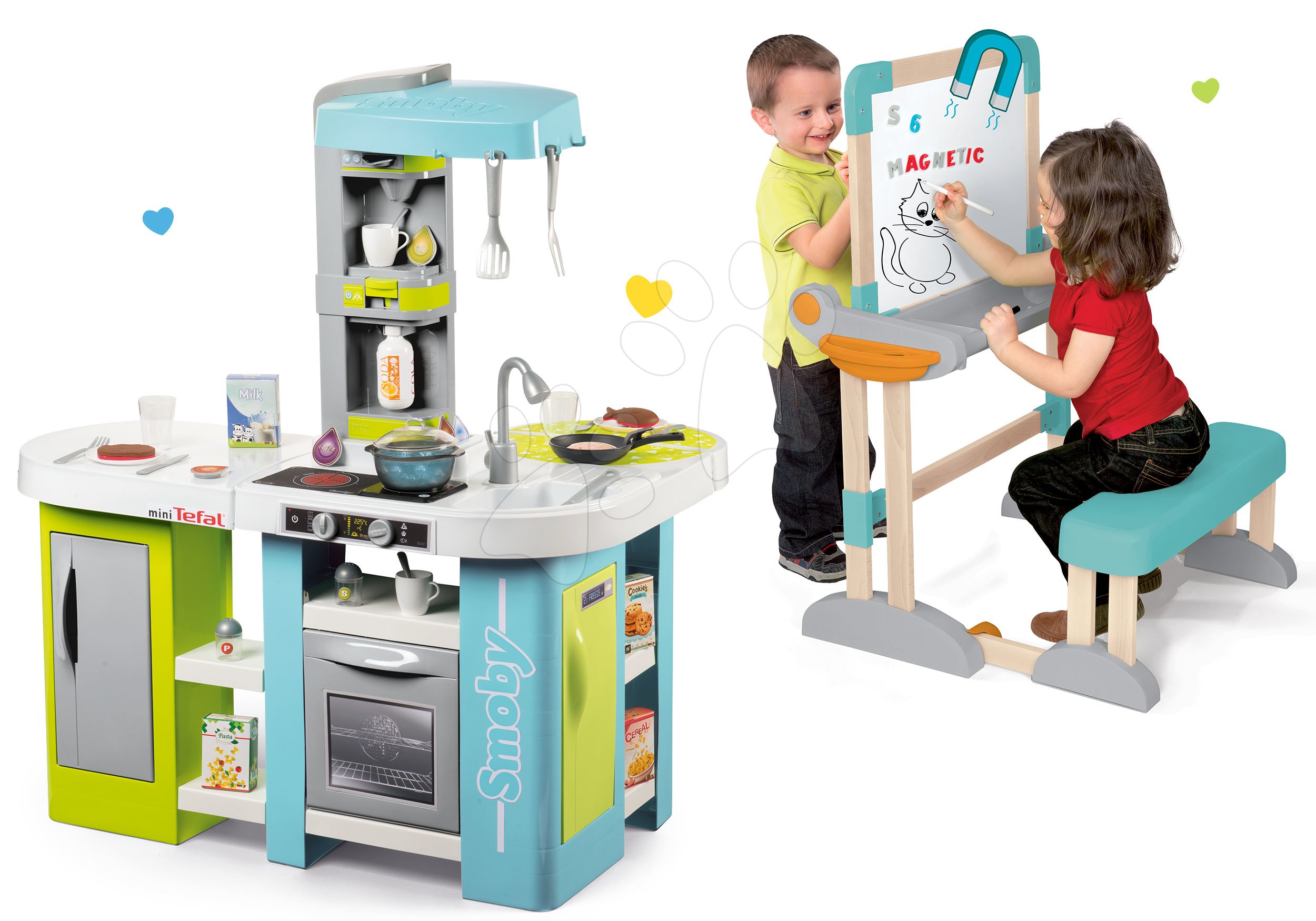 Smoby set kuchynka elektronická Tefal Studio XL Bubble a drevená lavica Modulo Space 2v1 311035-19