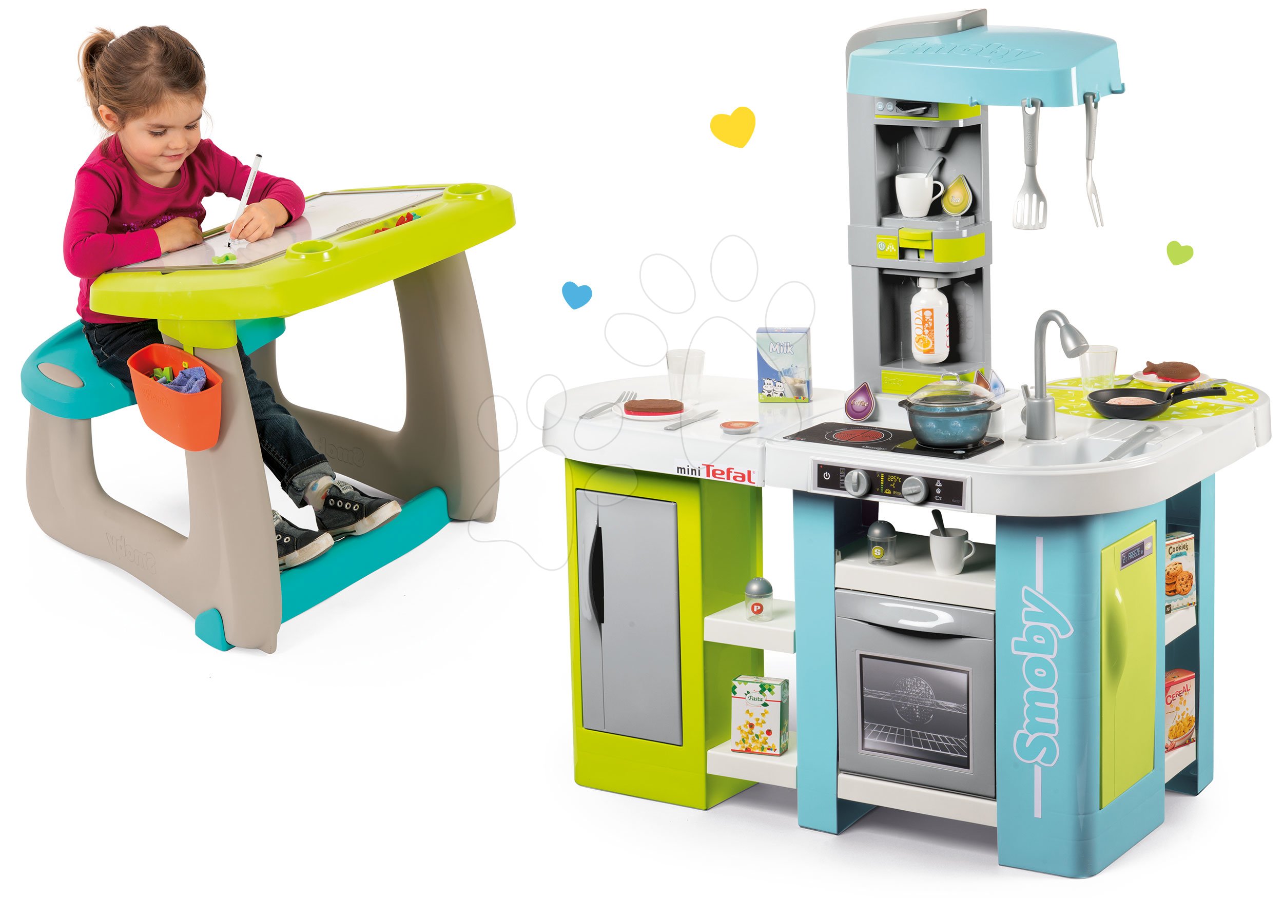 Set kuchynka Tefal Studio XL Bubble a lavica s odkladacím priestorom a tabuľou je vhodný darček pre všetky deti od 3 rokov. Hračky v sete spolu krásne farebne aj dizajnovo ladia a deti sa s nimi vydržia hrať dlhé roky. Hračky Smoby pomáhajú rozvíjať komunikačné a jazykové schopnosti detí, učia sa nové veci prirodzenou a hravou formou. Sadu hračiek ponúkame za zníženú cenu, takže pri nákupe ušetríte. Výrobca Smoby spája v hračkách najvyššiu kvalitu a pravý francúzsky dizajn, ktorý sa zapáči každému dieťaťu. Set hračiek je vhodný pre hru viacerých detí.