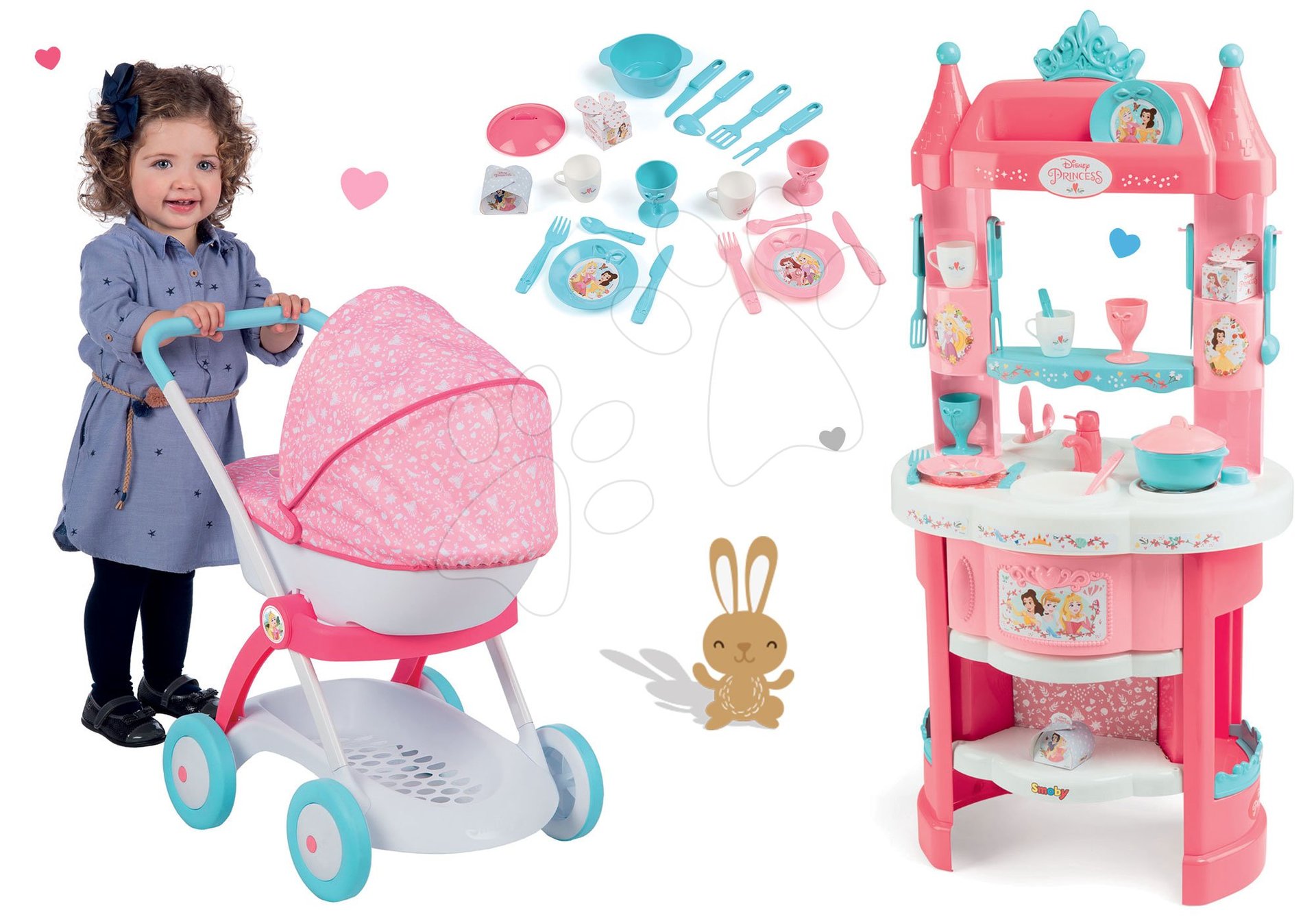 Set kuchynka s vežičkami Princezné a hlboký kočík Pastel Princezné pre 42 cm bábiky je krásna sada hračiek, ktorá prekvapí a poteší dievčatká od 3 rokov. Hračky v sete ponúkame za akciovú cenu, takže pri kúpe setu nielenže ušetríte, ale aj svojim deťom doprajete tie najlepšie hračky od spoločnosti Smoby. Hračky od Smoby sa vyznačujú jedinečným francúzskym dizajnom a funkčnosťou jednotlivých doplnkov. Jednotlivé doplnky spolu ladia a hodia sa do každej detskej izby.