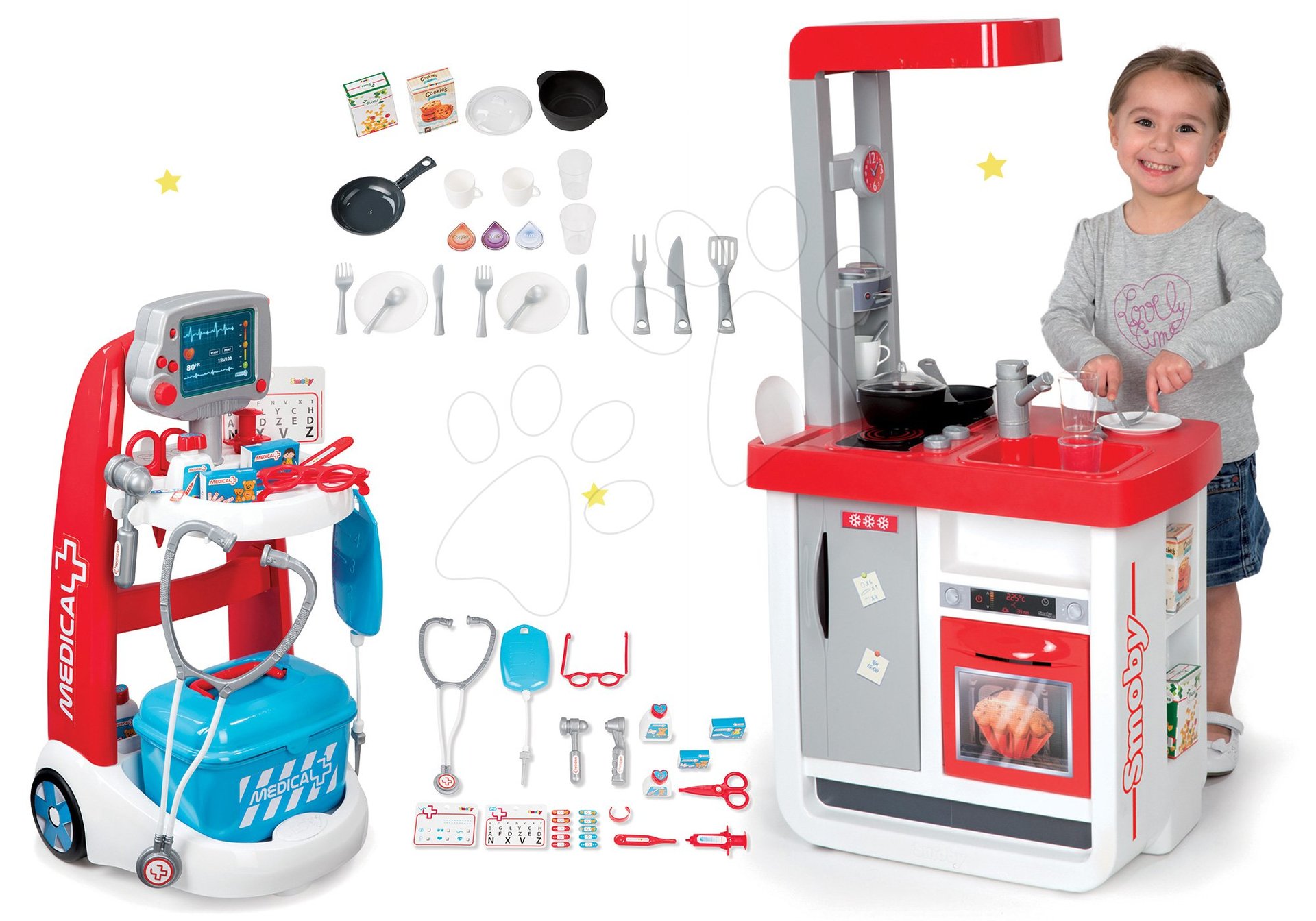 Máte doma malého kuchára alebo budúceho lekára? Set hračiek lekársky vozík elektronický Smoby a kuchynka elektronická Bon Appétit, je set skvelých hračiek pre deti od 3 rokov, ktoré milujú hry na rôzne profesie. Set hračiek za výhodnú cenu poteší rodičov a ich deti budú mať veľkú radosť z moderných hračiek s veľkým množstvom doplnkov. Hračky v sete pomáhajú deťom s rozvojom predstavivosti, fantázie a jemnej motoriky. S hračkami v sete sa zahrajú aj viaceré deti, súrodenci aj kamaráti. Set hračiek predstavuje pekný doplnok do každej detskej izbičky.