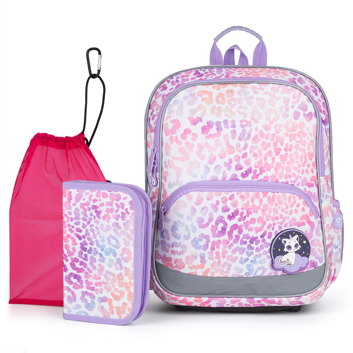 Zvýhodnený set školskej tašky s peračníkom a vrecúškom na prezuvky. Súčasťou setu sú tieto produkty: BAZI 24003 – Školská taška s magnetmi mačiek, PENN 24003 – Dvojito skladaný školský peračník, ZUZA 19045 – Vrecko na prezuvky