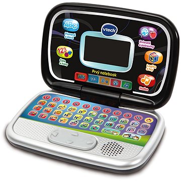 Detský notebook Vtech Prvý notebook – čierny SK: Tiež sa vaše dieťa hrá na dospelého? Praje si byť ako vy? Obstaraním detského notebooku Vtech Prvý notebook – čierny SK mu to splníte. Bude pracovať na notebooku, zrovna ako vy. A ešte sa toho veľa naučí. Hračka Vtech obsahuje viac ako 20 výukových a zábavných aktivít v slovenskom jazyku. Detský notebook Vtech v čiernej farbe je sklopný a je vybavený displejom s uhlopriečkou 8 cm. Deti ho môžu ovládať pomocou dotykovej klávesnice a dotykového ovládača (touchpad) so smerovými šípkami. Formou hry si osvoja napríklad 26 základných písmen slovenských abecedy, počítanie, ďalej rôzne tvary a zvieratá. Deti si následne svoje novo získané znalosti môžu overiť formou pútavých testov. Hra s detským notebookom Vtech rozvíja napríklad logické myslenie, úsudok a postreh. Hračka Vtech Prvý notebook je vhodná pre deti od 3 rokov do 7 rokov. Funguje na 2 AA batérie, ktoré sú súčasťou balenia. Kľúčové vlastnosti detského notebooku Vtech Prvý notebook – čierny SKDetský notebook Vtech Prvý notebook – čierny SK obsahuje stovky slov, fráz a piesníV čiernej farbeS viac než 20 výukovými a zábavnými aktivitami v slovenskom jazykuDetský notebook Vtech je sklopnýVybavený displejom s uhlopriečkou 8 cmOvládanie pomocou dotykovej klávesnice a dotykového ovládača (touchpad) so smerovými šípkamiS detským notebookom Vtech Prvý notebook sa deti formou hry naučia napríklad 26 základných písmen slovenských abecedyOverenie znalostí v pútavých testochPomáha deťom rozvíjať formou hry napríklad logické myslenie, úsudok a postrehHračka VTECH je vhodná pre deti od 3 do 7 rokovPracuje na 2 AA batérie (sú súčasťou balenia) Zábavné aktivity pre veľa nových vedomostíS detským notebookom Vtech Prvý notebook získajú vaše deti veľa nových vedomostí pri viac ako 20 výukových a zábavných aktivitách. Sú prehľadne zoradené v piatich rôznych okruhoch hneď pod displejom a dá sa medzi nimi pohodlne prepínať. Volajú sa Písmená a slová Čísla a tvary, Zvieratá a potraviny, Logika a hry, Hudba. V prvom menovanom sa deti treba naučia rozlišovať veľké aj malé písmená a tiež ich používať priamo v slovách. Čo je ďalej dôležité, osvoja si správnu výslovnosť. V druhom okruhu sa naučia čísla do desať, ďalej ich porovnávanie a počítanie. Pracujú s rôznymi tvarmi, tiež s ovocím a zeleninou. Mimo to sa naučia poznávať zvieratá podľa ich stôp a zvukov. Hračka Vtech obsahuje viac ako 30 hudobných ukážok a melódií. Podporuje tak poznávanie hudobných nástrojov a štýlov. Názvy hlavných hier a aktivít: Poznávame písmenáPoradie písmen v abecedePísmenkový kvízChýbajúce písmenoKde je tučniakPoznávame číslaPoznávame tvaryTrochu iné počítanieČíselný kvízZvuky a stopy zvieratPoznávame zvieratáOvocie a zeleninaOpravy múrChytanie rýbCesta domov Rozmery vrátane balenia: 30 × 33,5 × 8 cm Rozmery otvoreného výrobku: 23 × 28 × 4 cm
