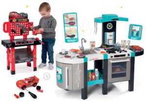Smoby kuchynka elektronická Tefal French Touch Bubble Smoby a pracovná dielňa Autá 3 s otáčacou rampou 311206-10