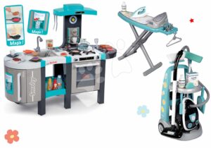Smoby detská kuchynka elektronická Tefal French Touch Bubble Smoby a upratovací vozík s vysávačom a žehliacou doskou 311206-3