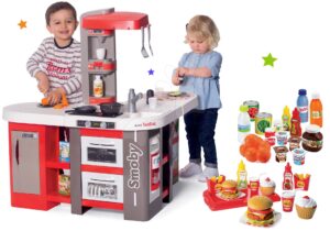 Set kuchynka elektronická Tefal Studio 360° XXL Bubble Smoby mrkvová a potraviny s hamburgermi na tácke