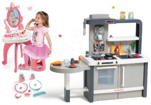 Set kuchynka rastúca s tečúcou vodou Tefal Evolutive Smoby a kozmetický stolík Princezné 2v1 so stoličkou