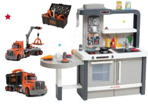 Set kuchynka rastúca s tečúcou vodou Tefal Evolutive Smoby a kamión s pracovným kufríkom Black&Decker Truck a náradím