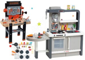Set kuchynka rastúca s tečúcou vodou Tefal Evolutive Smoby a pracovná dielňa Black+Decker elektronická s vŕtačkou