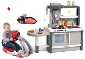 Set kuchynka rastúca s tečúcou vodou Tefal Evolutive Smoby a trenažér V8 Driver so zvukom a svetlom s opaskom